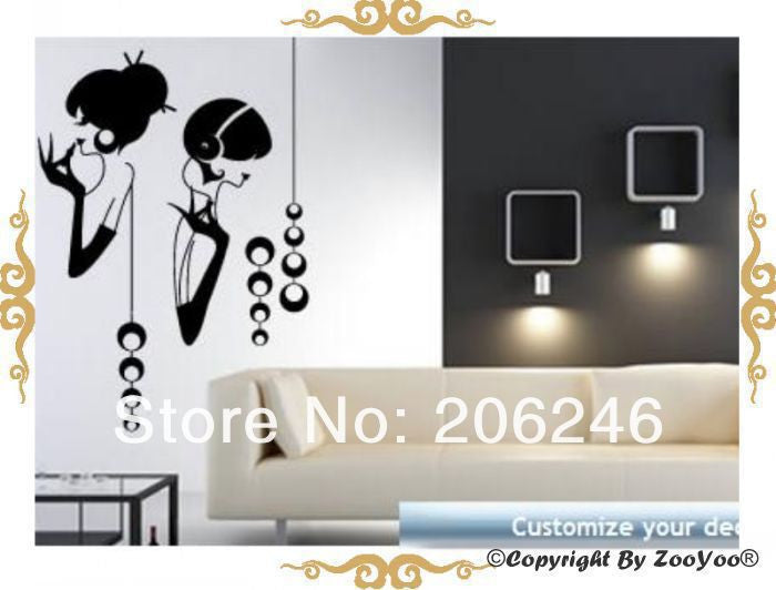 "Two Pretty Girls Enjoy Music" Vinyl Removable Wall Decals Waterpoof Art Decals Home Decor SM6