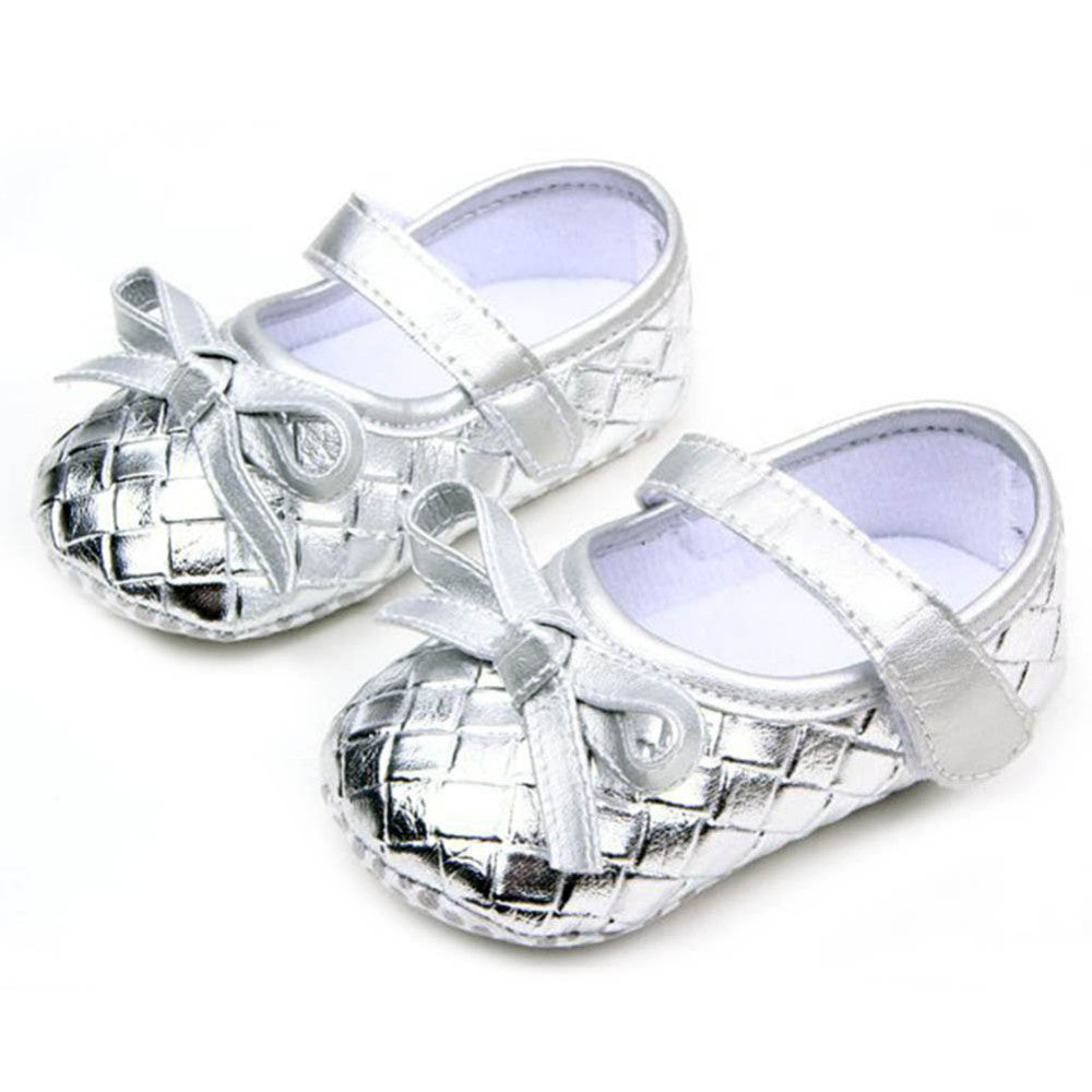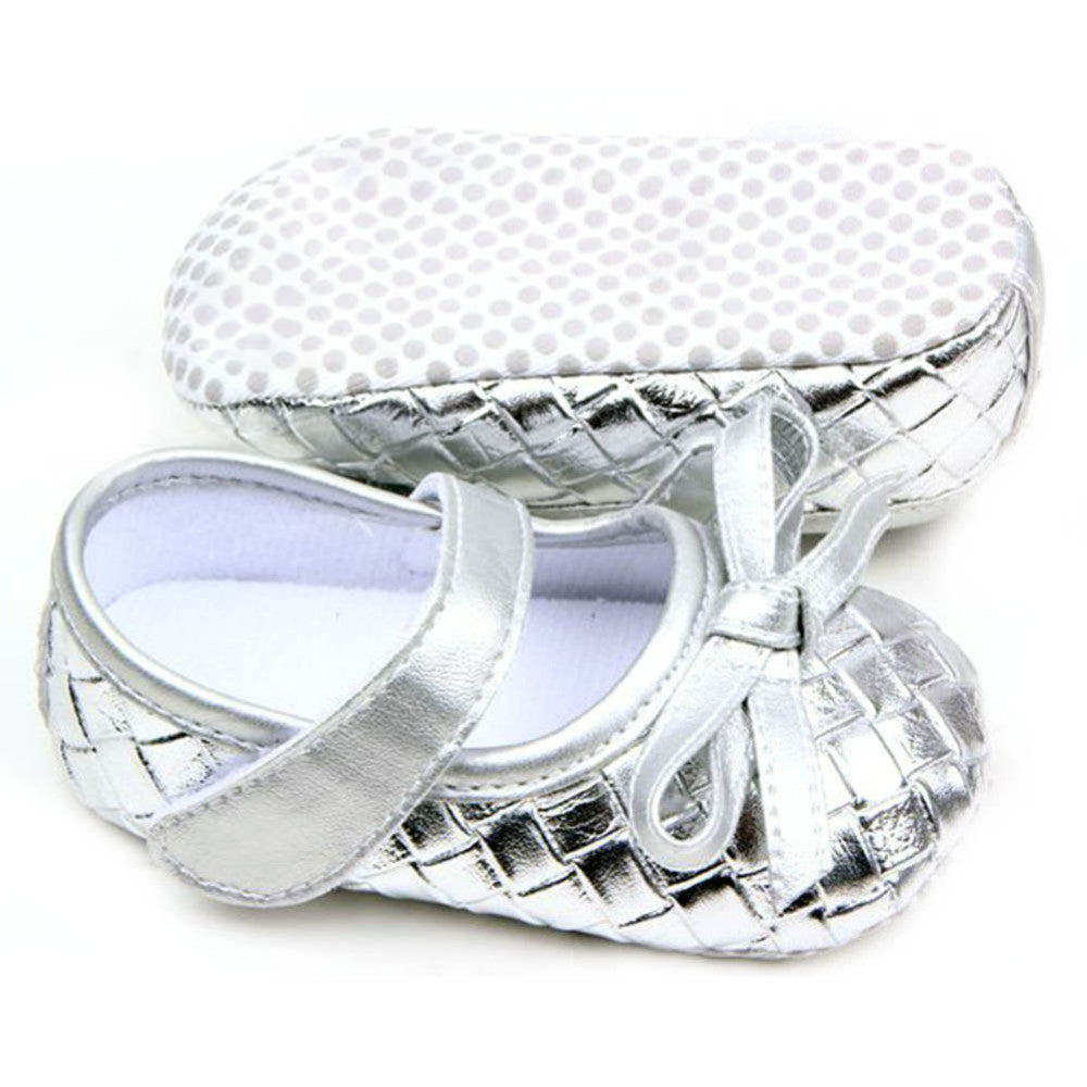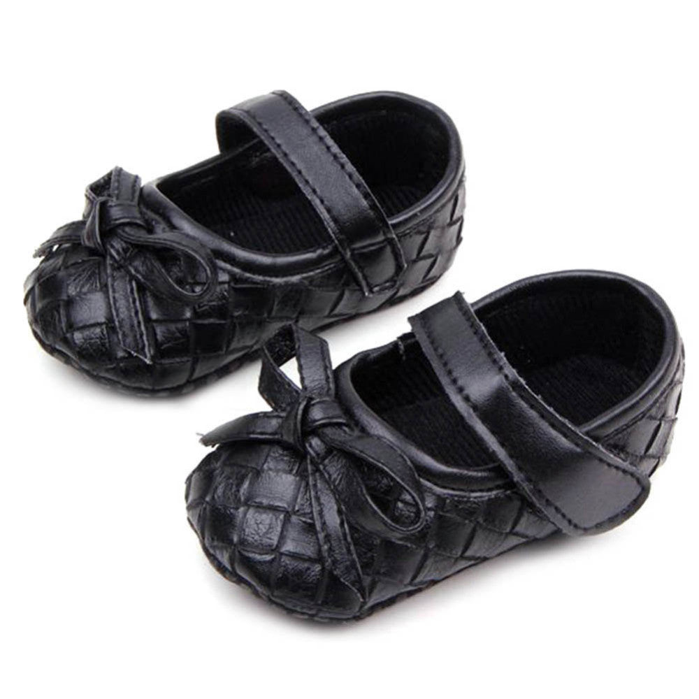 0-12Months PU Leather Bowknot Lattice Baby Girls Shoes Soft Sole Anti Slip Toddler First Walker Shoes SM6