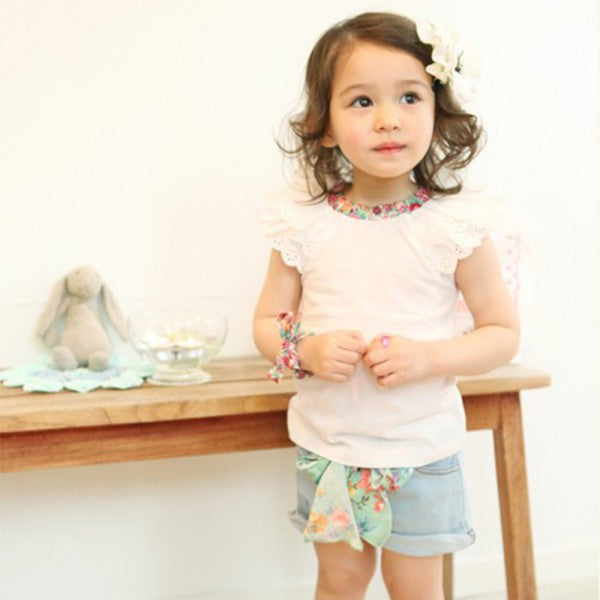 0-2Y Kids Baby Girls Clothing Floral Collar T-shirts Cute Short Sleeve Tops Blouses Shirts PY SM6