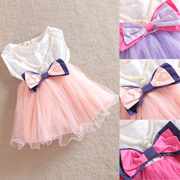 0-3Y Toddler Baby Kids Girls Princess Tutu Dress Bow Necklace Layered Dresses SM6