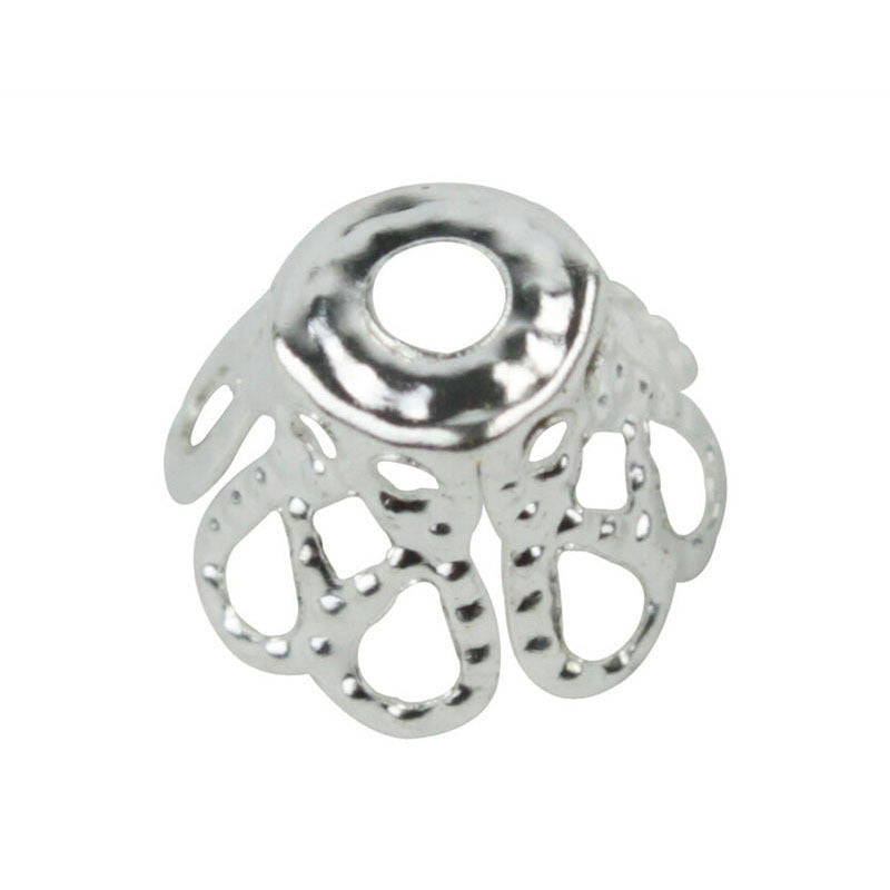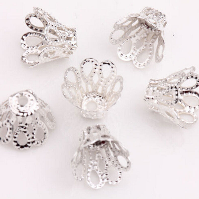 100 Pcs Silver Plated Flower Bead Caps Findings Filigree Flower Cup Shape 7mm Silver Bead Caps For Diy Jewelry Making SM6