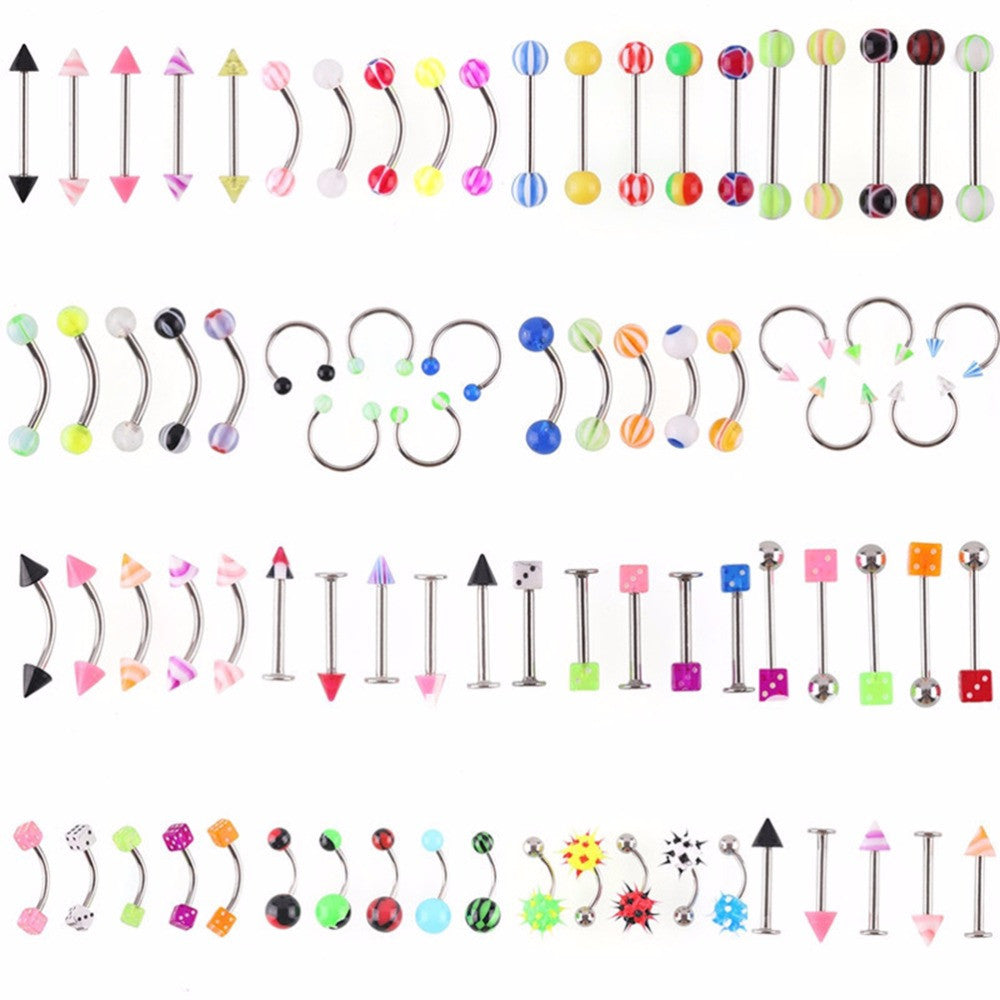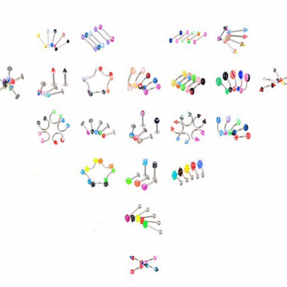 105Pcs Body Jewelry Eyebrow Navel Belly Lip Tongue Nose Piercing Bar Ring SM6