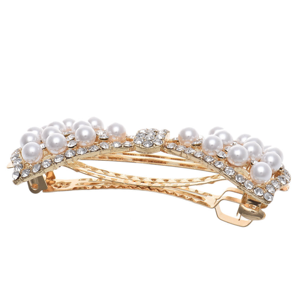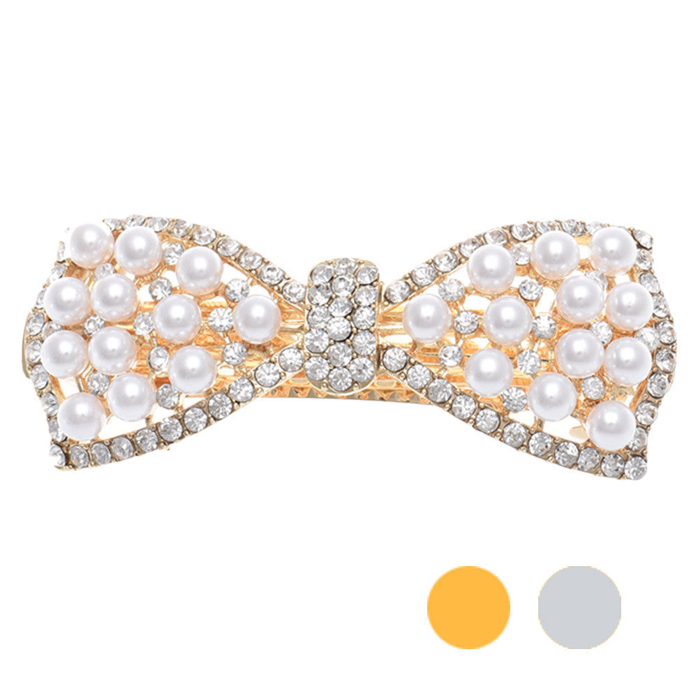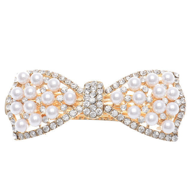 1pcs Shine Rhinestone Girls Woman Bow Hairpin Full Diamond Pearl Bow Spring Clip For Hair Care #3546 SM6