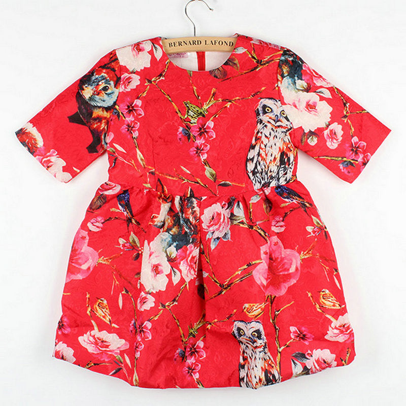 2-8Y New Kids Children Girls Floral Owl Print Princess Dress One Piece Party DressesSM6