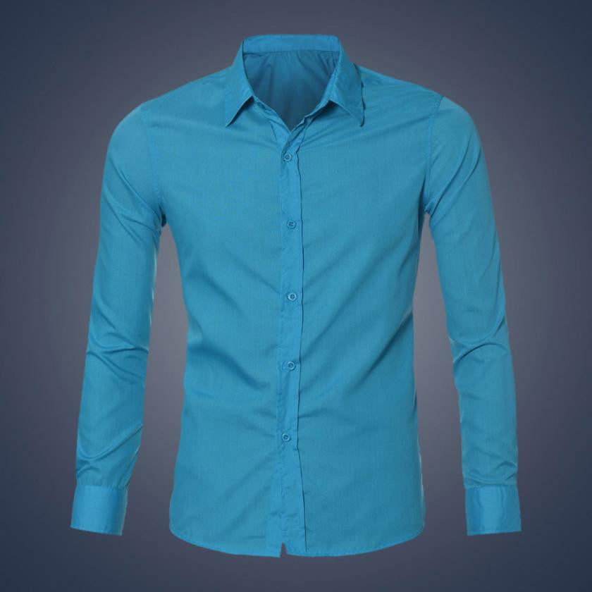 2016 Designer Shirts Long Sleeve Casual Slim Fit Stylish Dress Shirts Kleid Shirts Solid #3546 SM6