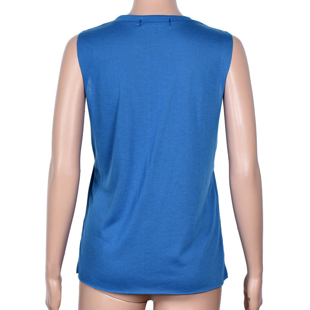 2016 New Fashion Women Girls T-Shirt Women Blue Loose O-Neck T-Shirt Casual Sleeveless Cotton Vest Tops #3546 SM6