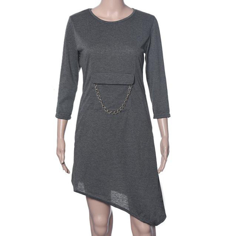 2016 new style cotton dress women spring gray causal with chains dress long sleeve dress vestidos mujere vestidos sexy #546 SM6