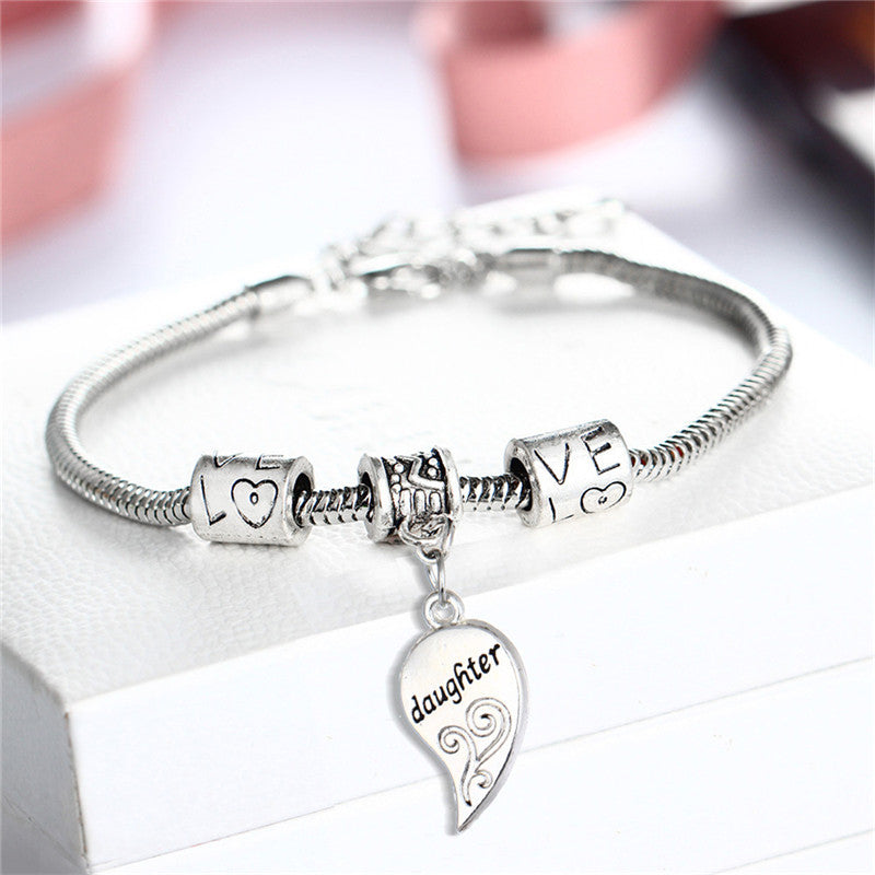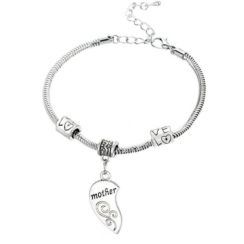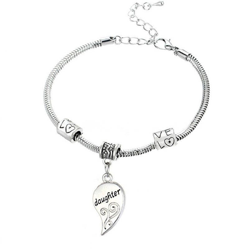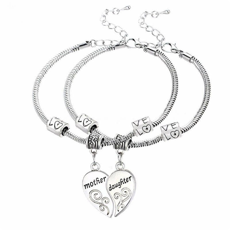2PCS Mom Women Girl Femme Charm Statement Jewelry Mother Daughter Broken Heart Bracelet Bangle Party Gifts SM6