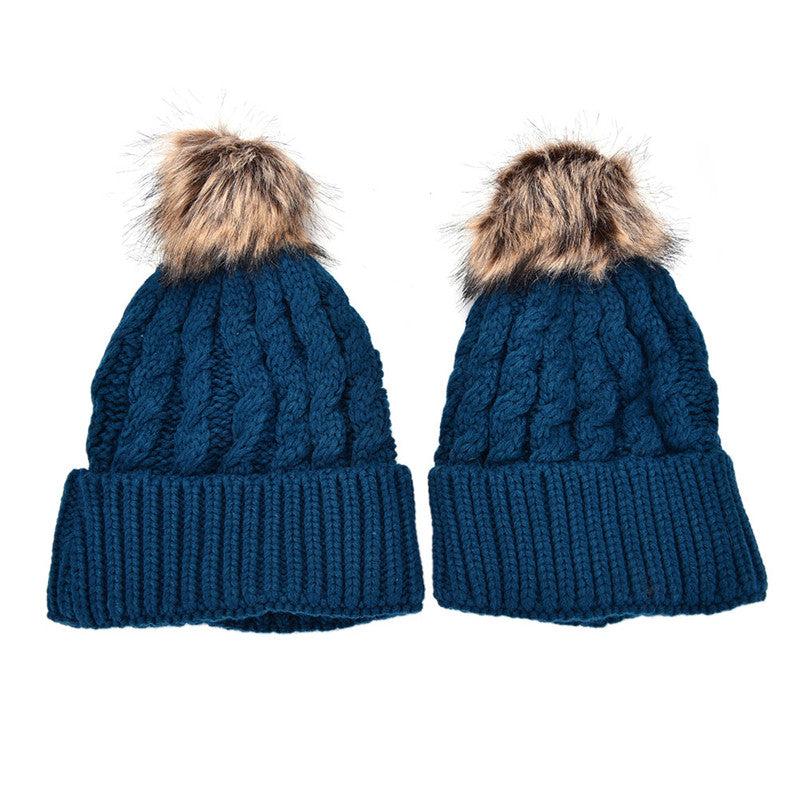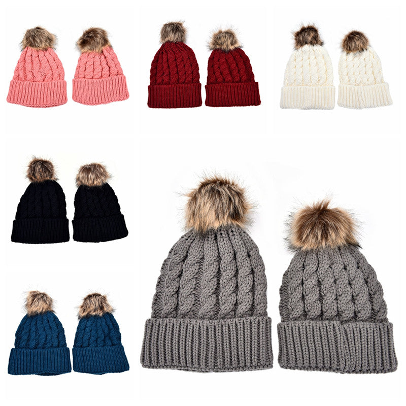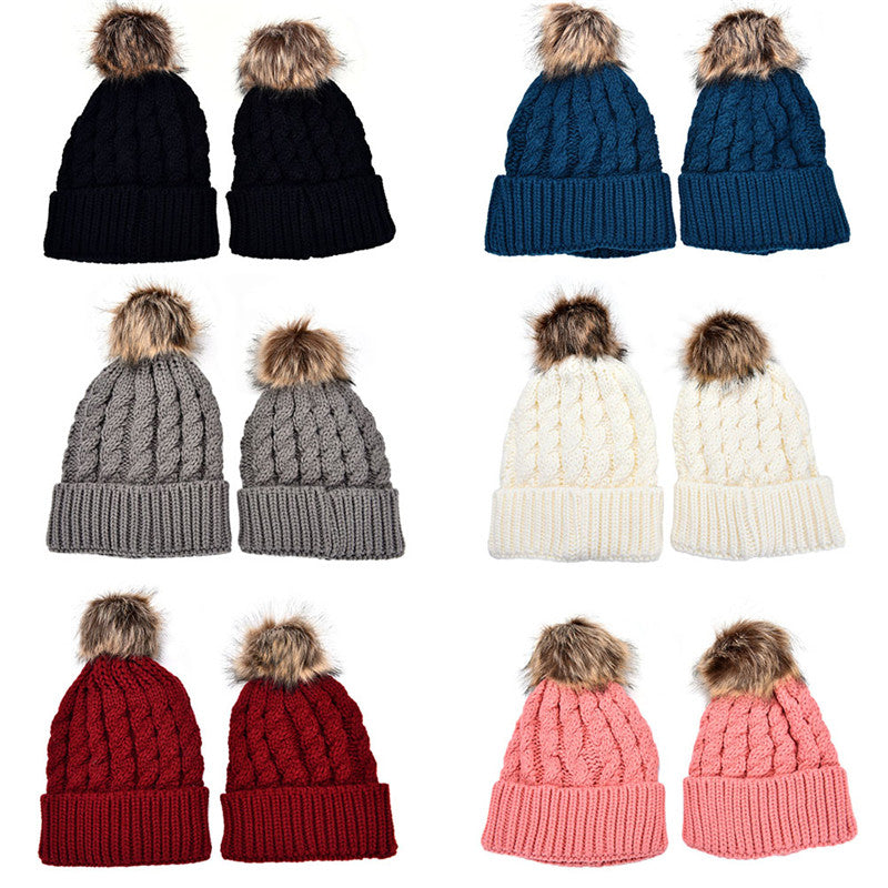 2Pcs Mother Kids Child Baby Warm Knit Beanie Pom Hat Crochet Ski Cap 6 Colors SM6