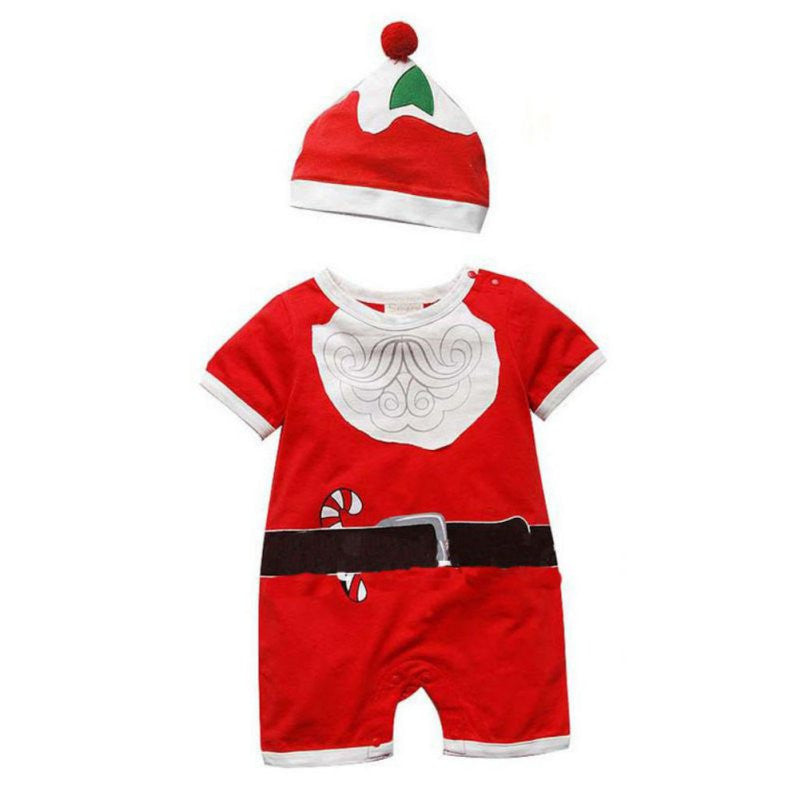 2pcss Baby Boys Girls Xmas Santa Claus Clothing Set Short Sleeve Romper Jumpsuit Hat Outfit Clothes Sets Christmas Gifts SM6