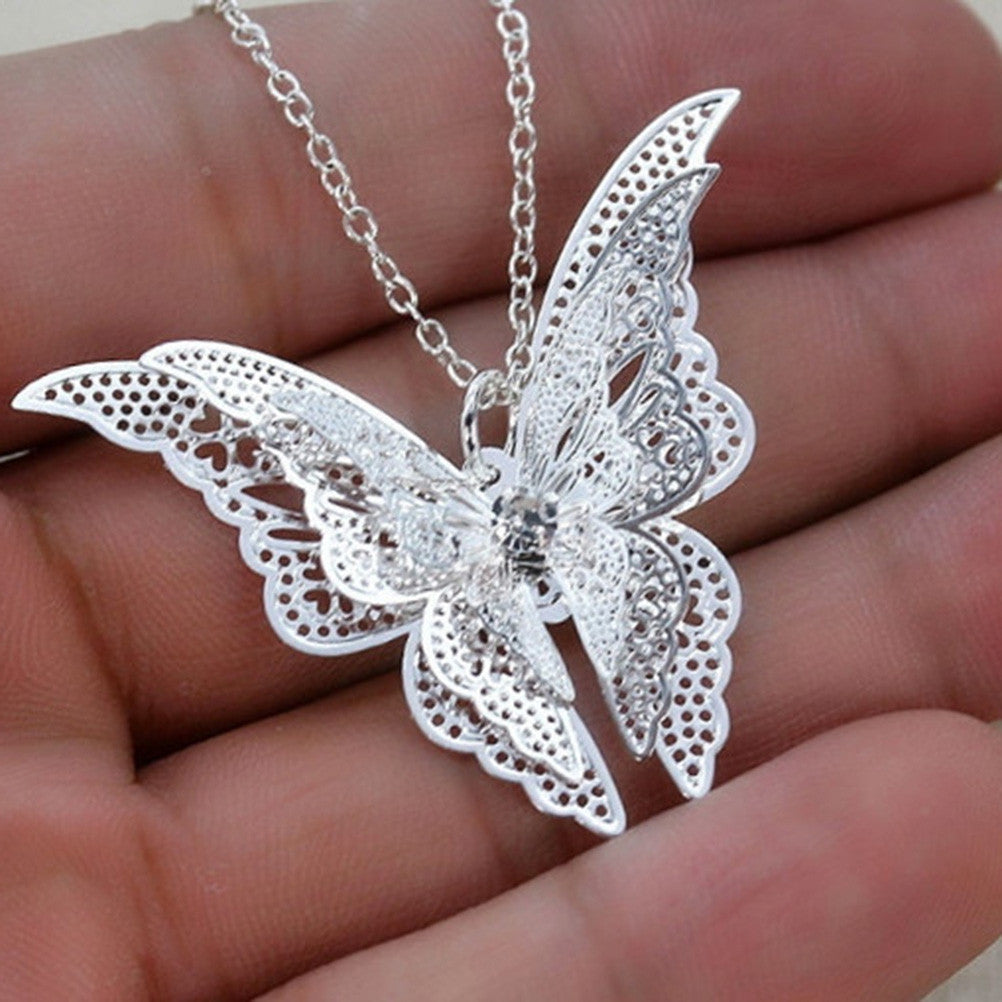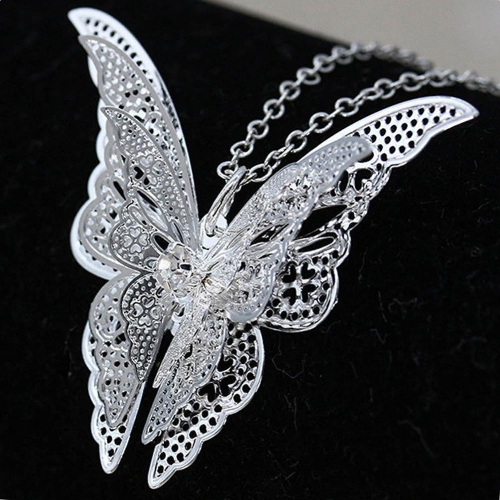 3 Layer 3D Crystal Rhinestone Silver Plated Butterfly Long Necklaces Sweater Pendants Collars Jewelry SM6