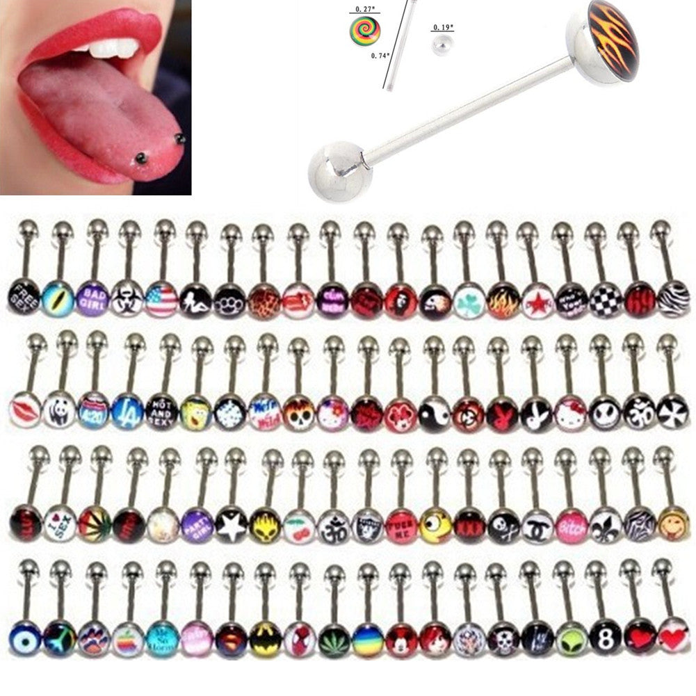 30Pcs Tongue Ring Tongue Bar Stainless Steel Body Piercing Punk Style Jewelry SM6