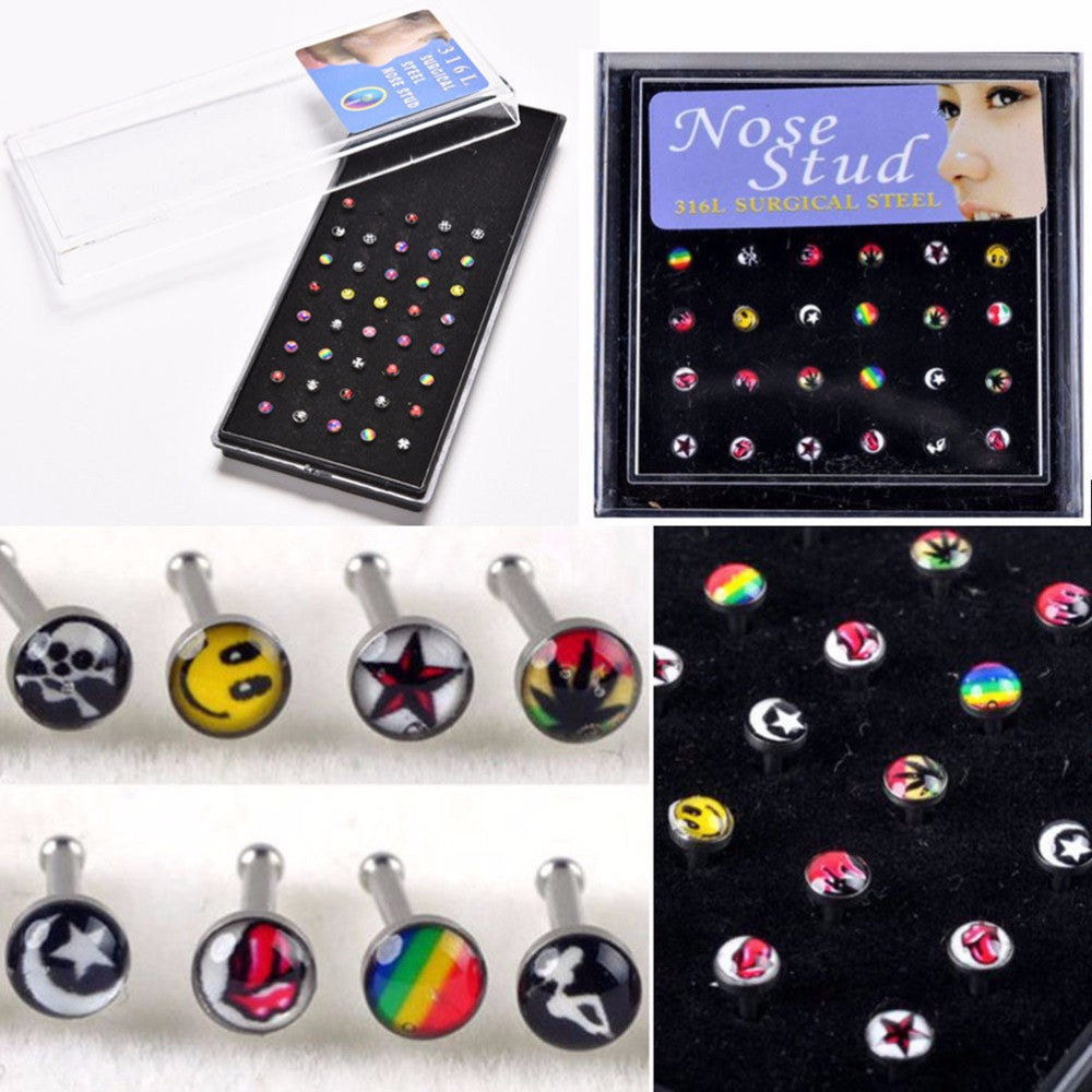 316L Stainless Surgical Steel Nose Piercing Rhinestone Stud MultiStyle Nose Ring Nose Stud Body Jewelry 24pcs or 40pcs SM6