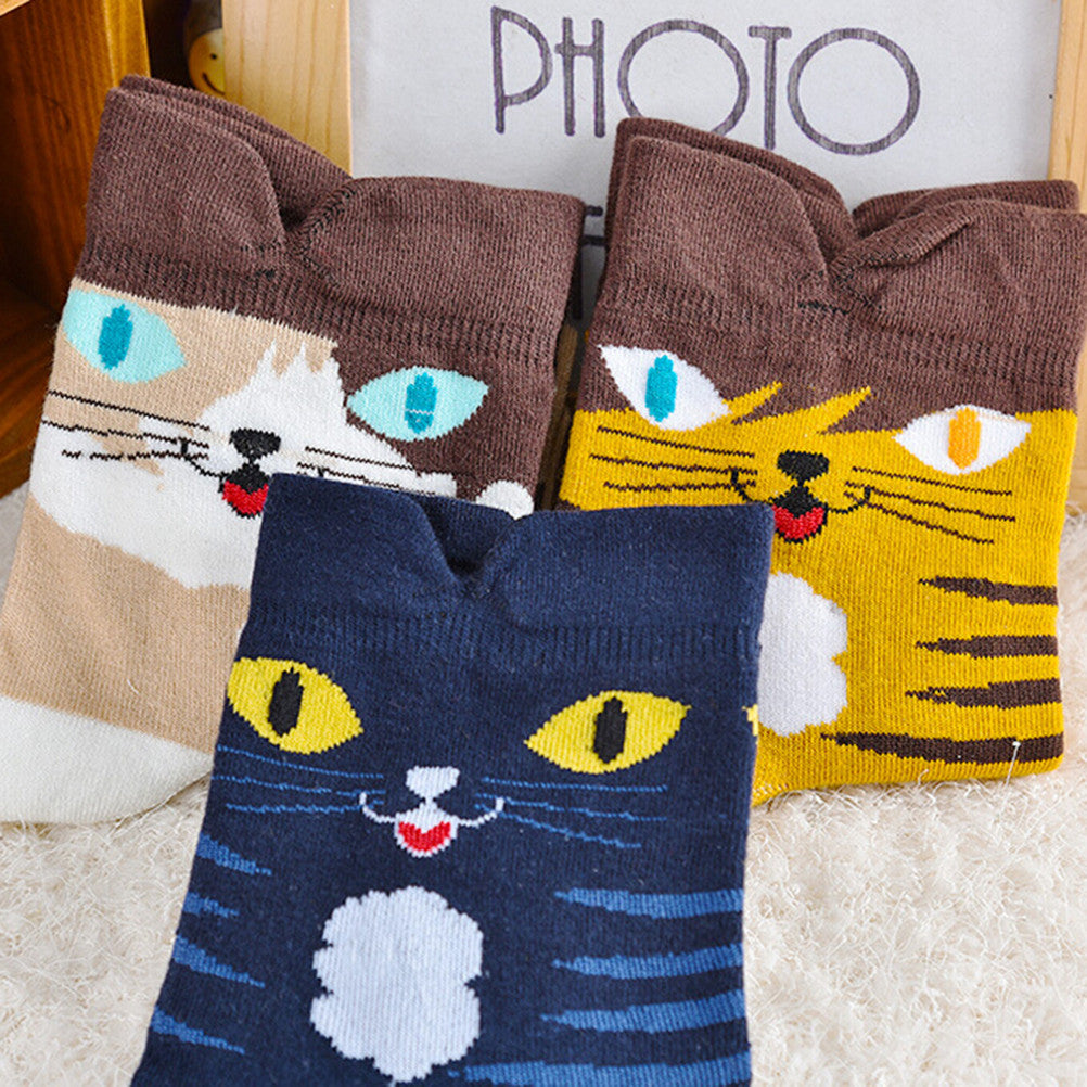 3D Animals Striped Cartoon Socks Women Girl Cat Footprints Cotton Ankle Socks SM6