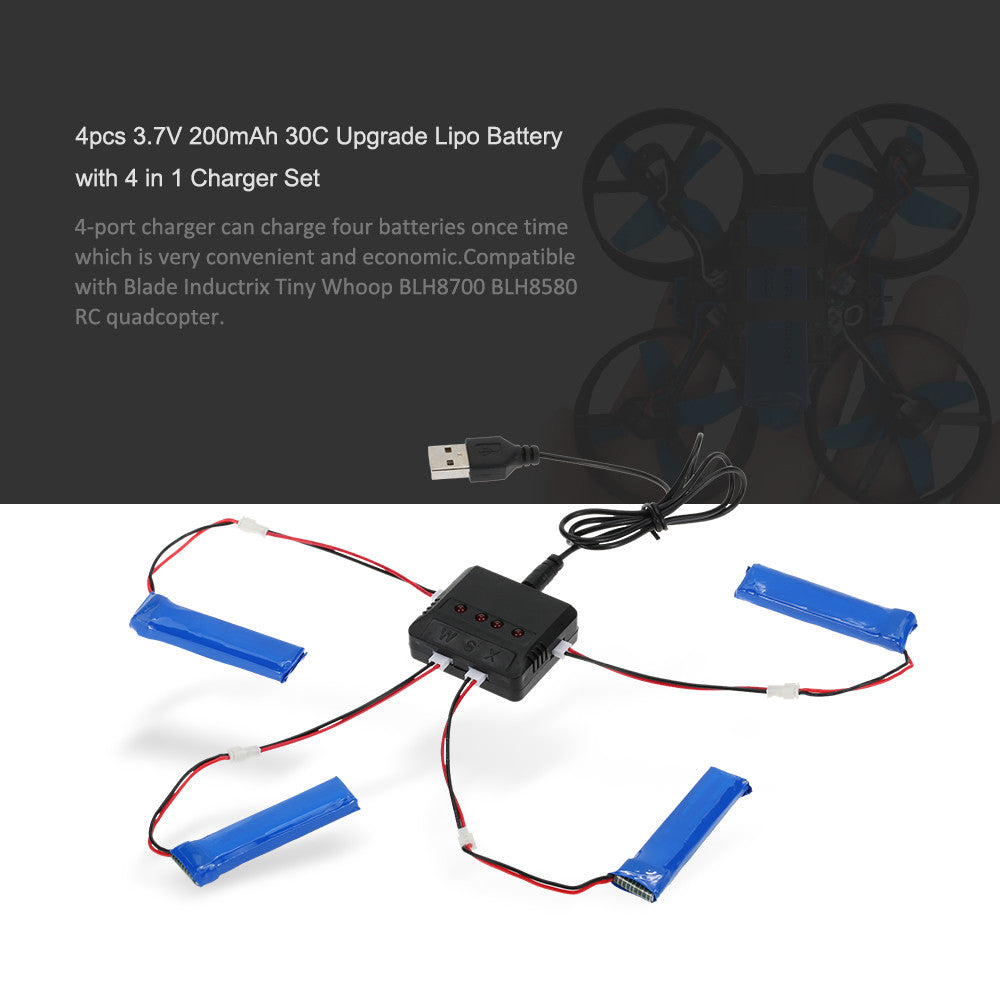 4pcs 37V 200mAh 30C Upgrade Lipo Battery with 4 in 1 Charger Set for Blade Inductrix Tiny Whoop BLH8700 BLH8580 RC Quadcopter SM6