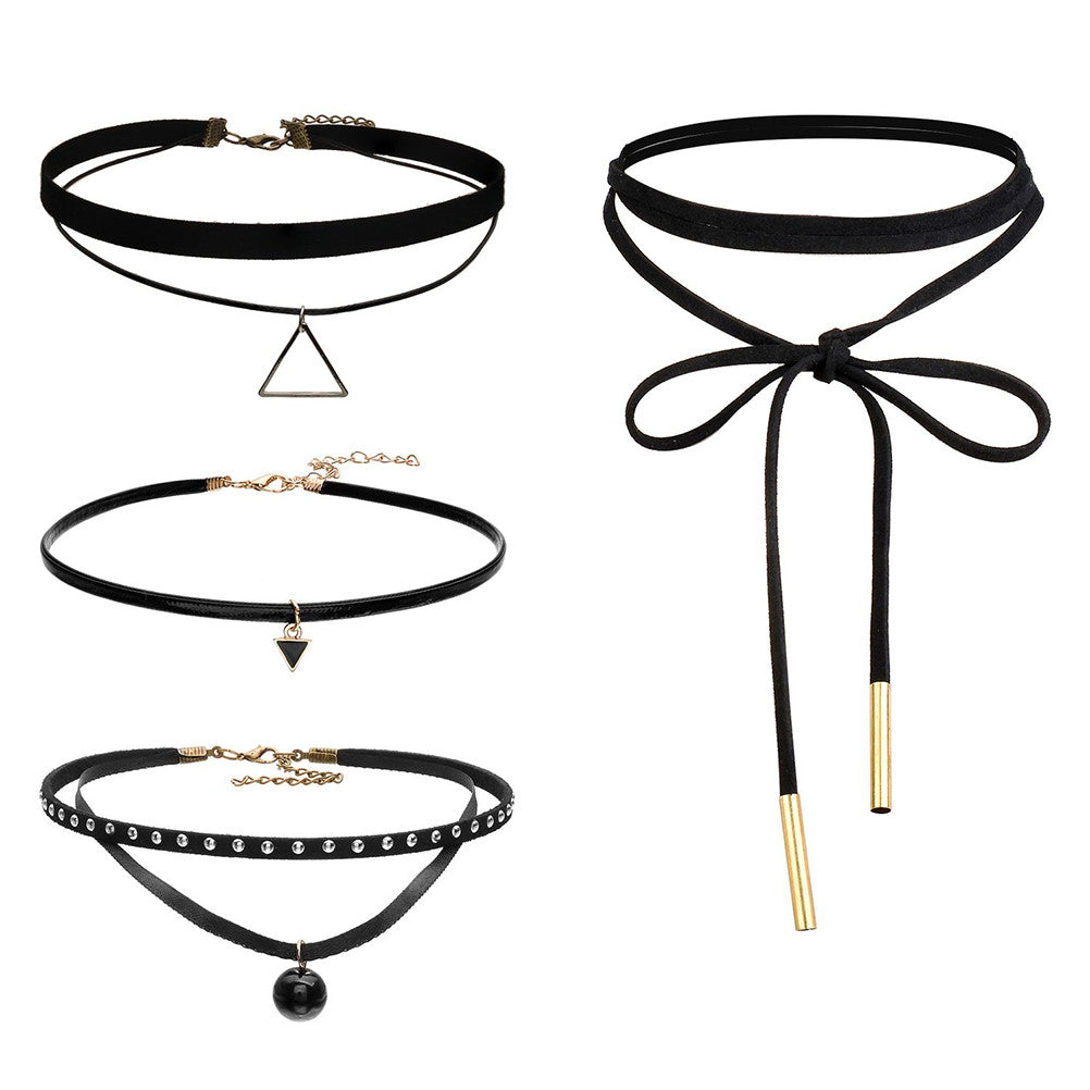 4pcs jewelry black leather bow Tassel choker DIY necklace gift for women girl SM6