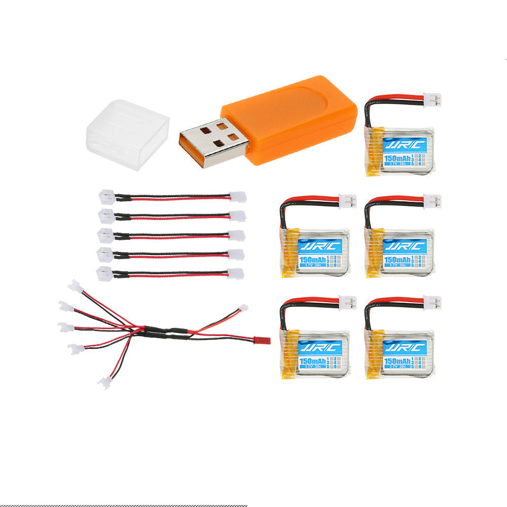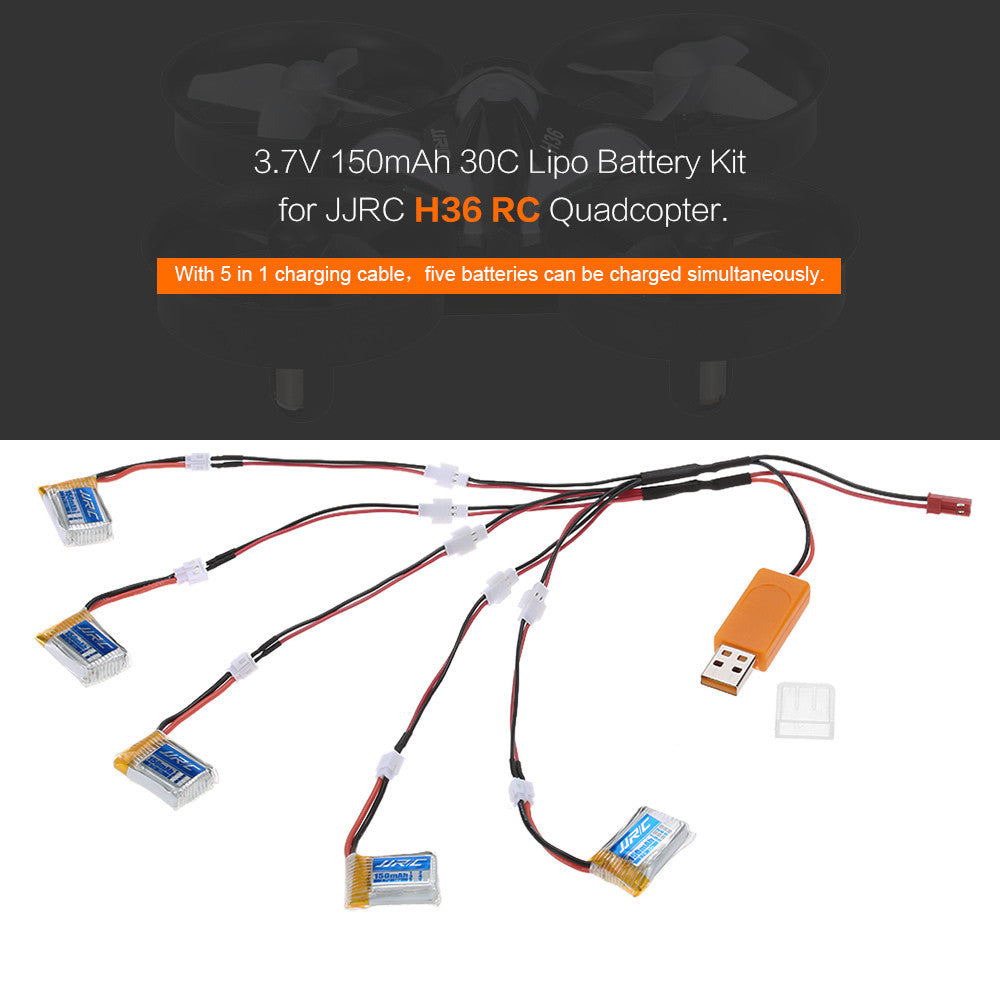 5pcs Original JJRC 37V 150mAh 30C Lipo Batteries USB Charger 5 in 1 Charging Cable for JJRC H36 RC Quadcopter SM6