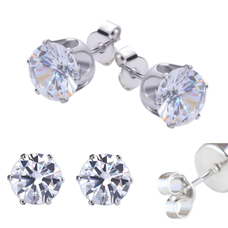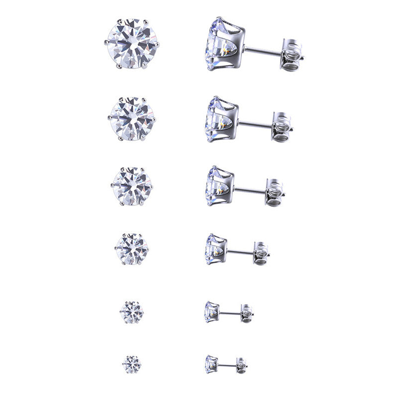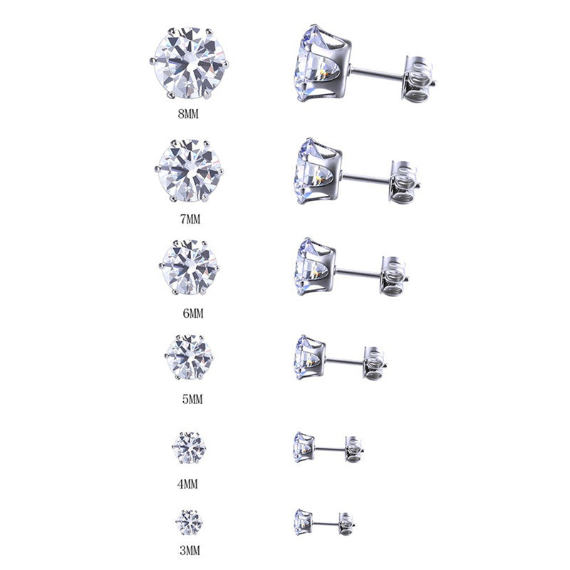 6 Pair 3-8MM Fshion Punk Cubic Ear Studs Stainless Steel Round Small White Black Stud Earrings Jewelry For Cool Women Men SM6