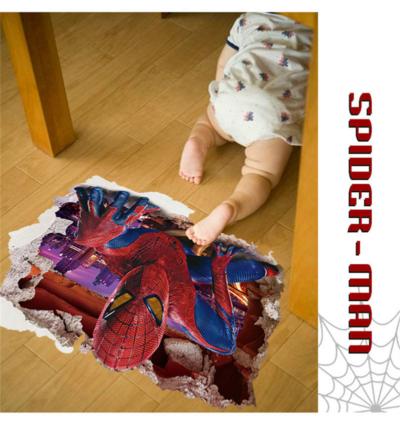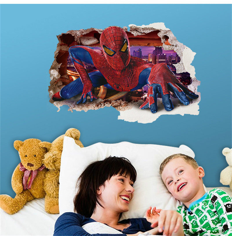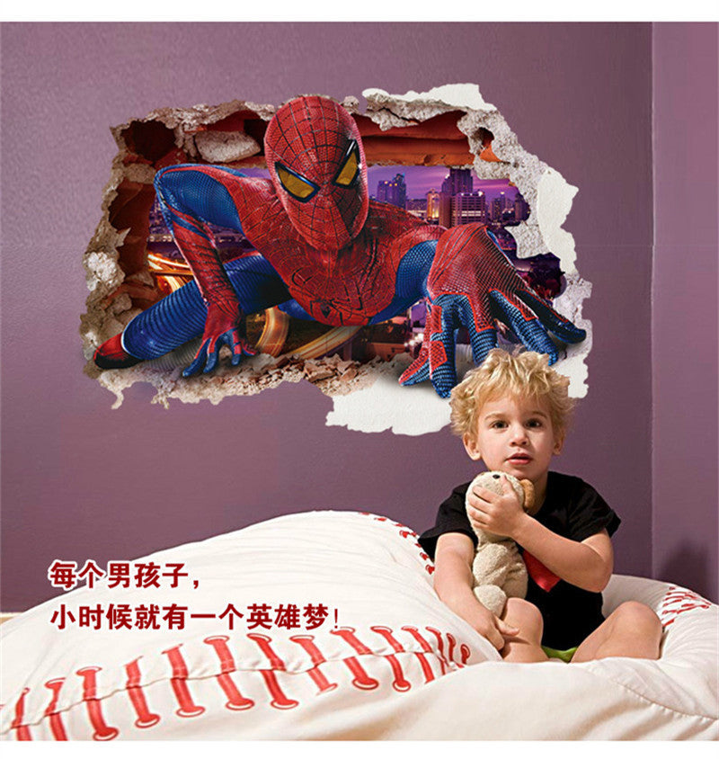 60*90cm 3d boys Dream spiderman through wall sticker removable kids wall decals children bedroom wall art decor SM6