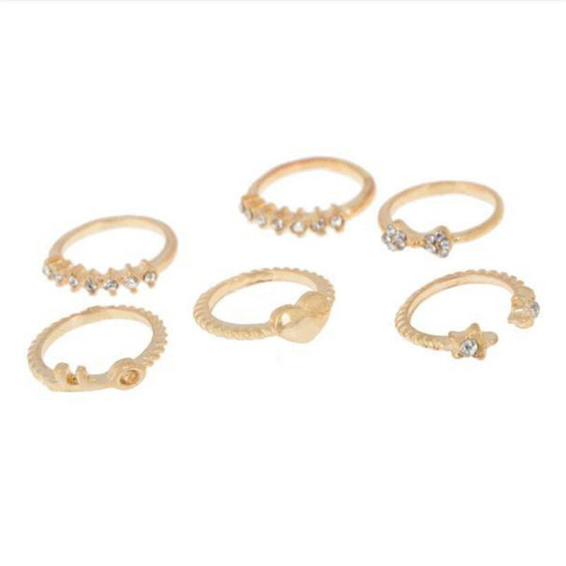 6pc Gold Sliver finger Knuckle Rings For Women Sweet Rhinestone Star Bowknot Heart Ring Set SM6