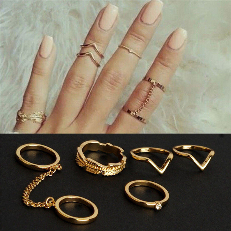 6pc Stacking punk bague femme rings gold midi ring set finger knuckle Charm sheet glass for anelli ring For Women SM6