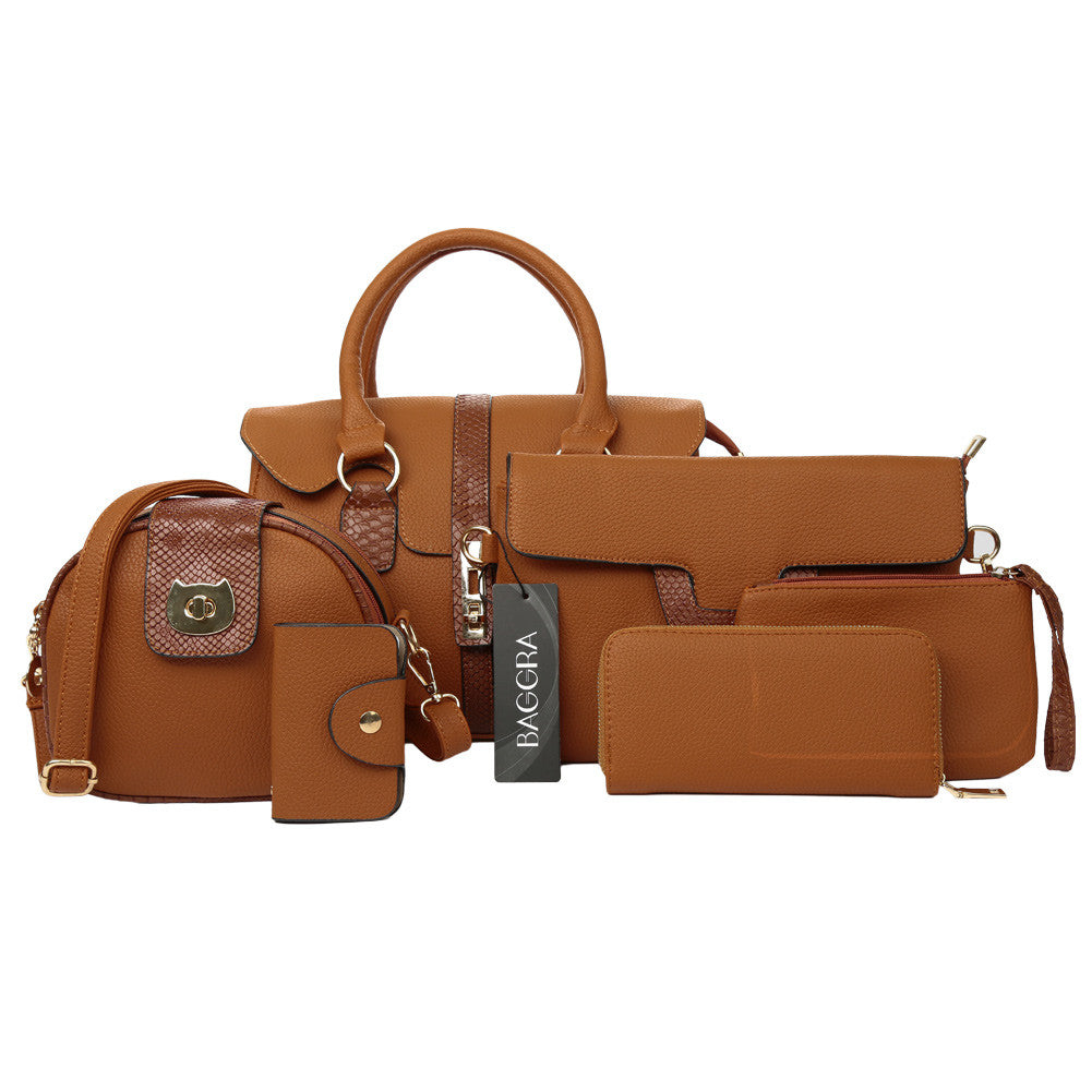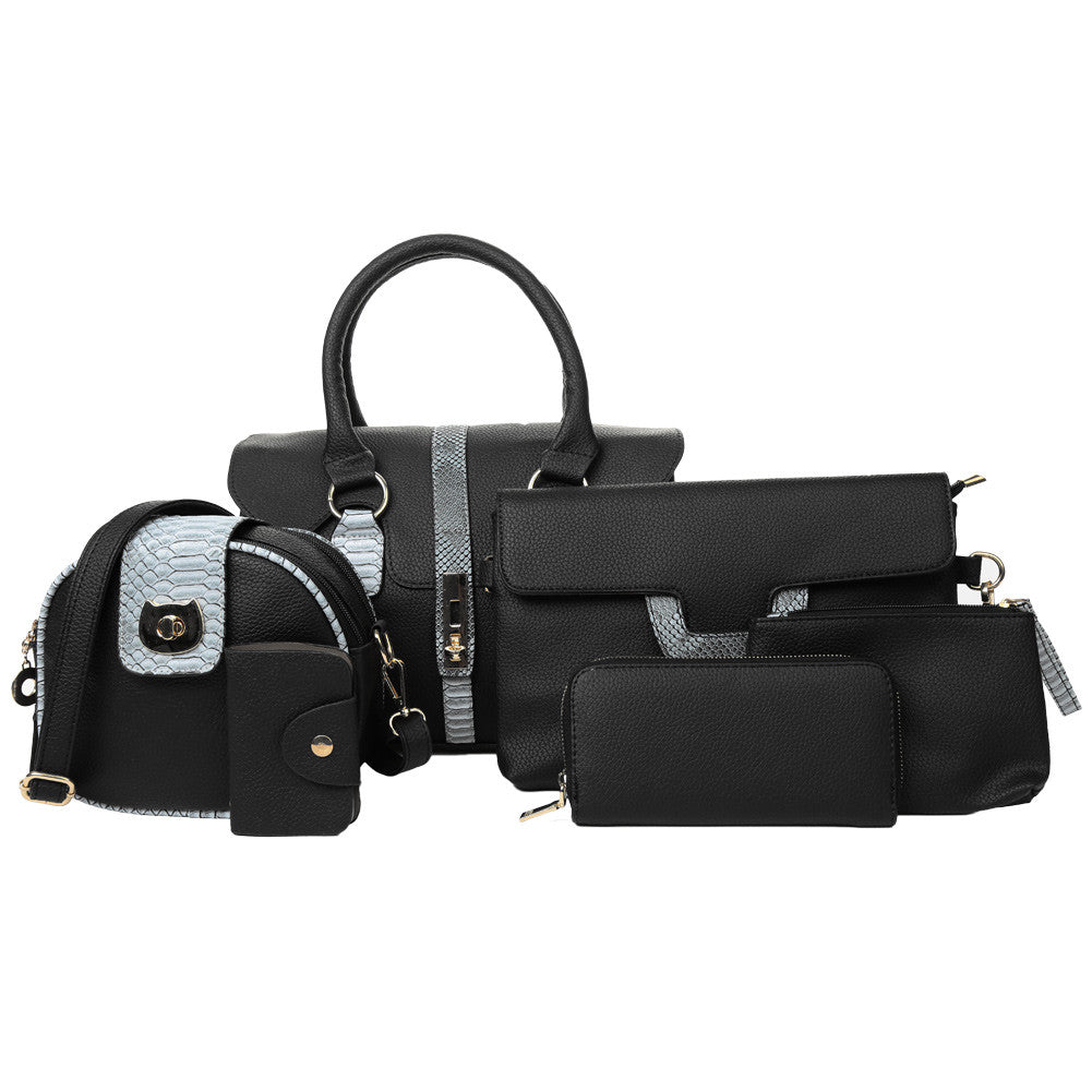 6PCS Women PU Leather Handbag Set Snake Skin Texture Ladies Designer Handbags Sets Zipper Hasp Elegant 6 PCS Tote Bag Wallet Set SM6