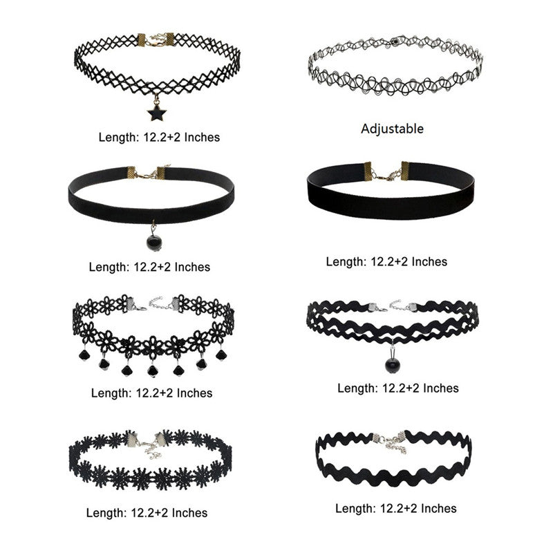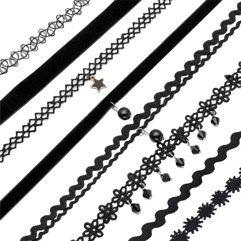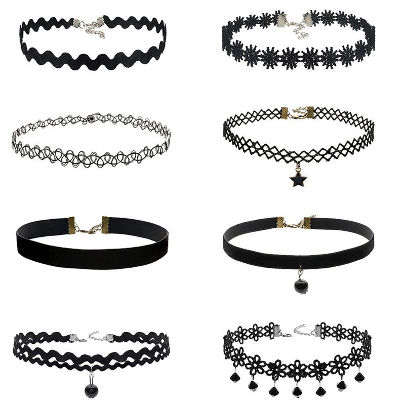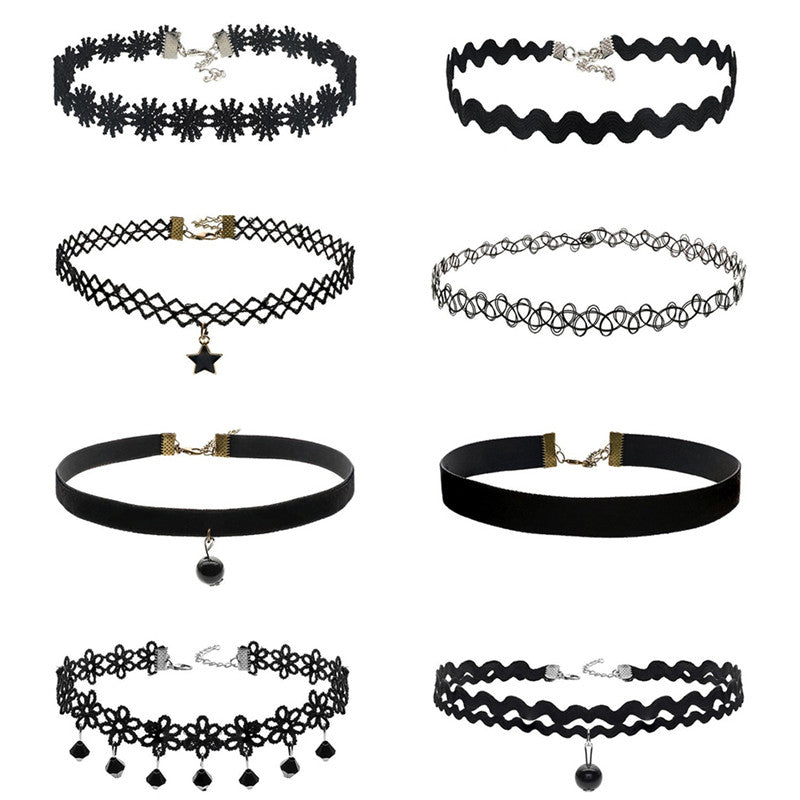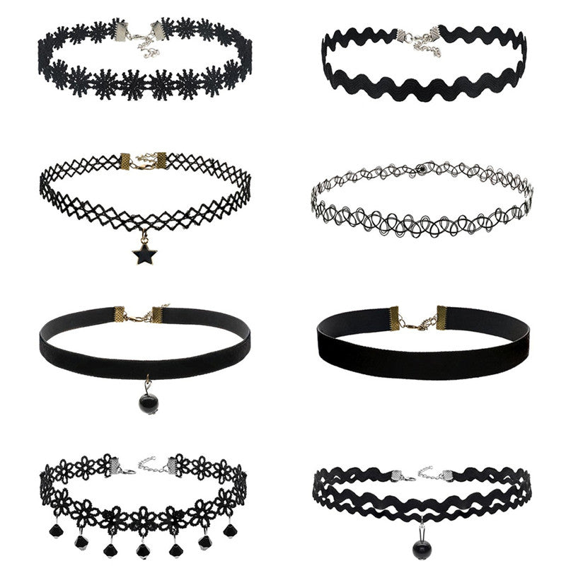 8Pcs Sexy Gothic Punk Collar Necklace Velvet Tattoo Lace Choker With Star Pendant Jewelery For Women SM6