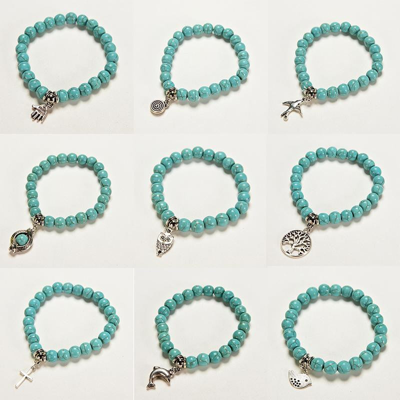 9 Styles Silver Plated DIY Animal Elasticity Charm Bracelet Women Jewelry Pendant Turquoise Bead Bracelet Bangles SM6