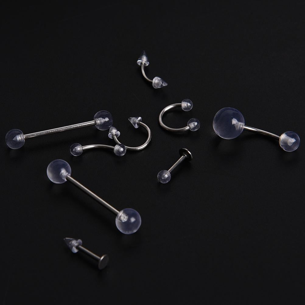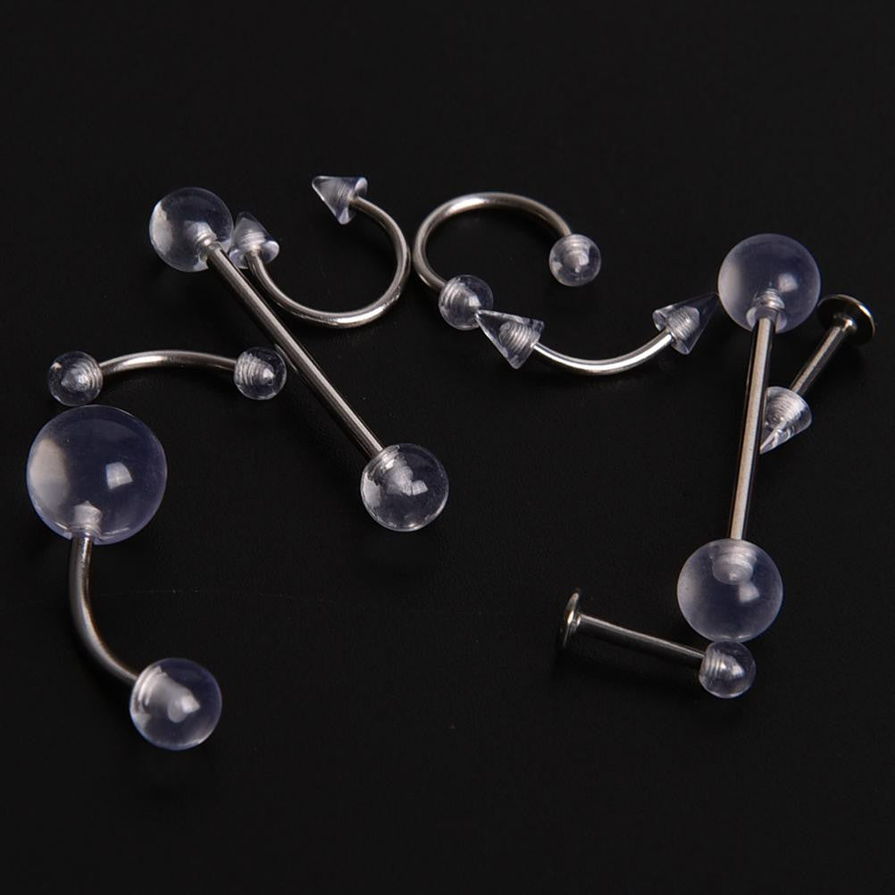 9Pcs Clear Belly Navel Tragus Tongue Lip Rings Bars Body Piercing Jewelry SM6