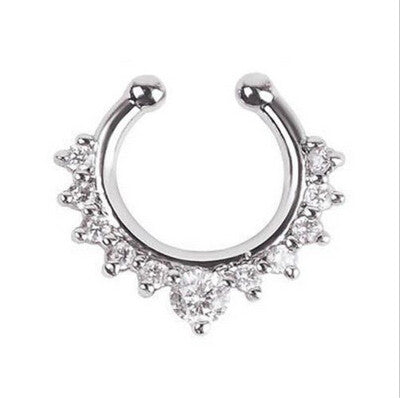 Alloy Rhinestone Nose Hoop Nose Rings Body Piercing Jewelry Fake Septum Clicker Non Piercing Hanger Clip On Jewelry SM6