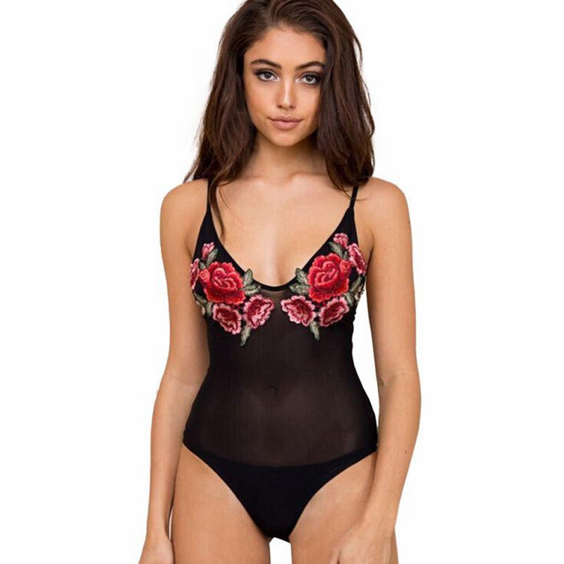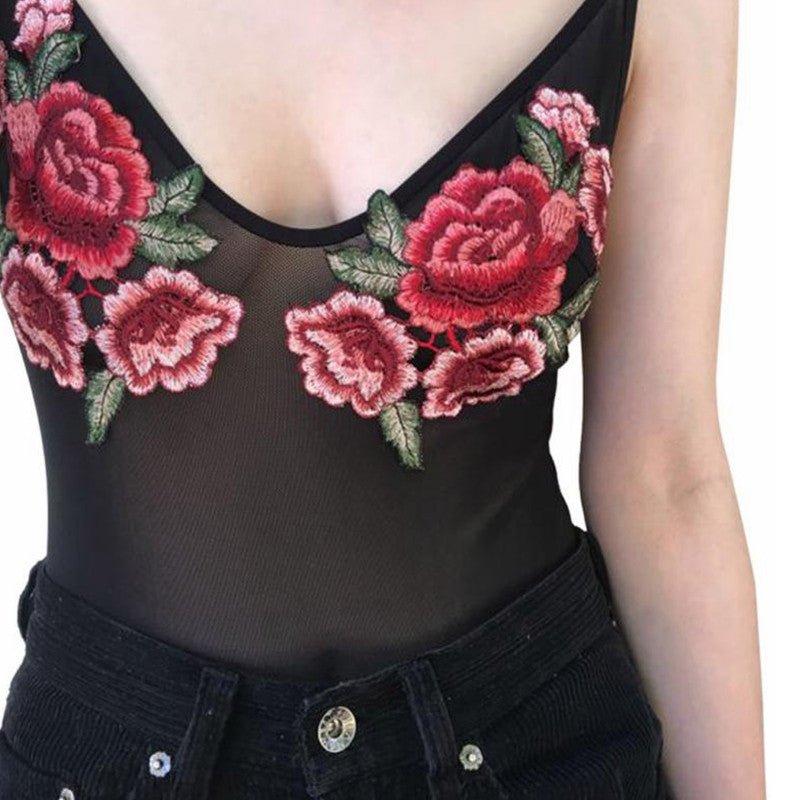 Appliques Sexy Summer Jumpsuit Mesh Transparent Sleeveless Sexy One Piece Outfits Women Summer Bodysuit #121 SM6