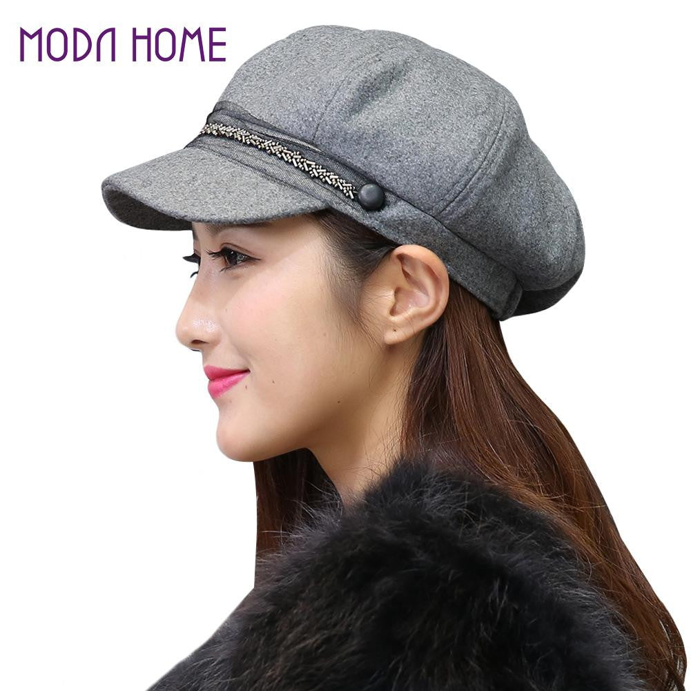 Artist Women's Warm Wool Beret Hat Beading Mesh Lining Cap Casual Dome Bare Chapeu Feminino Boina SM6