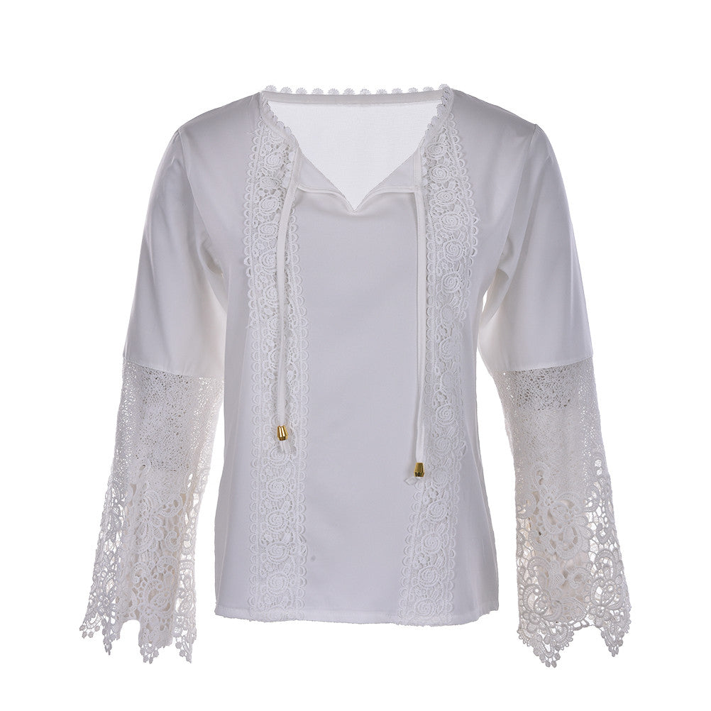 Autum Women chiffon Lace shirt Long sleeve Patchwork blusas tshirt Plus size women white tops SM6