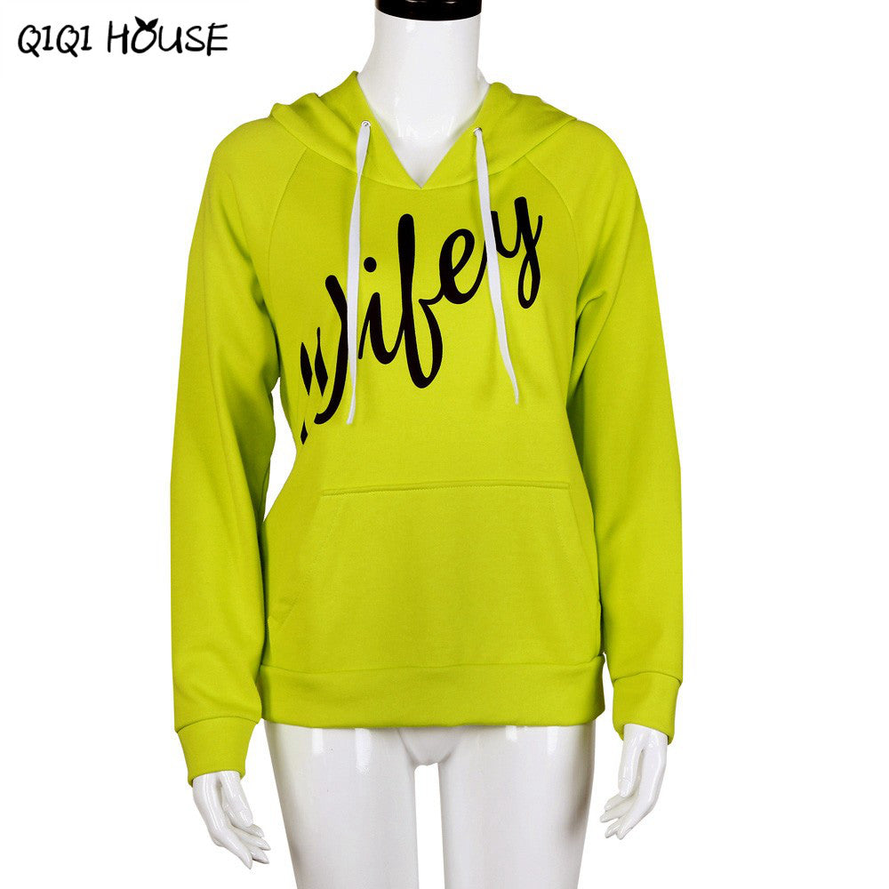 Autumn 2016 Women Velvet Hooded Sweatershirt Fluorescent Green Unsix Long Sleeve Print Letter Blouse Chandal Mujer Completo#A910 SM6