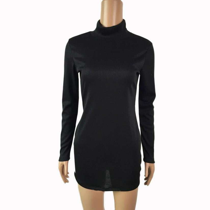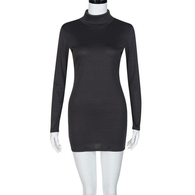 Autumn Dress Slim Solid Long Sleeve Mini Dress Turtleneck Sexy Club Bodycon Dress Women Pink Dress Vestidos Curtos#112 SM6
