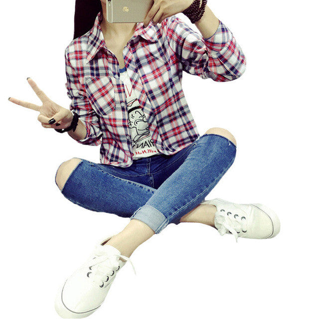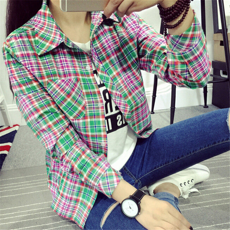 Autumn Fashion Casual Women Blouse  European New Simple Plaid Shirts Turn-down Collar Long Sleeve Tops Female Shirt 31661 SM6
