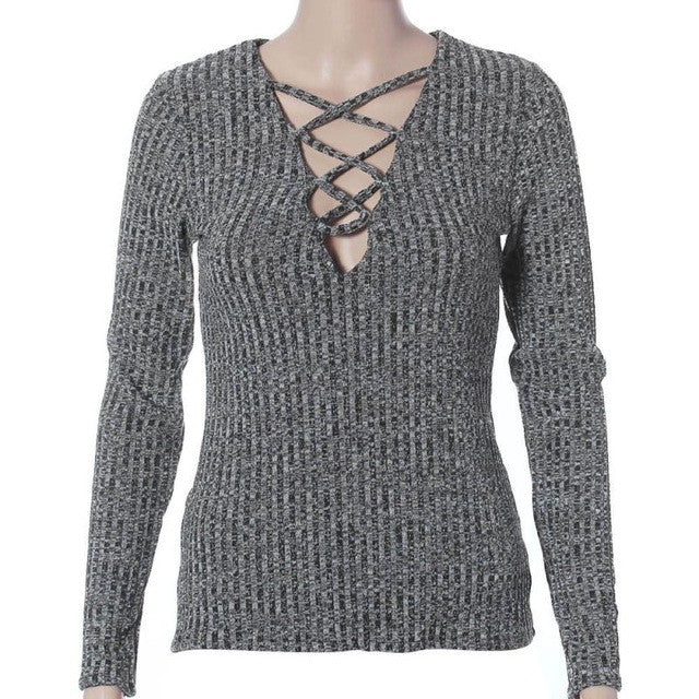 Autumn Long Sleeve Women Blouse Knitted Sexy V-Neck Casual Blouse Long Sleeve Slim Blouse Remeras Mujer Casual#B11 SM6