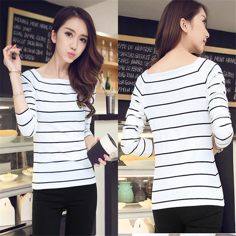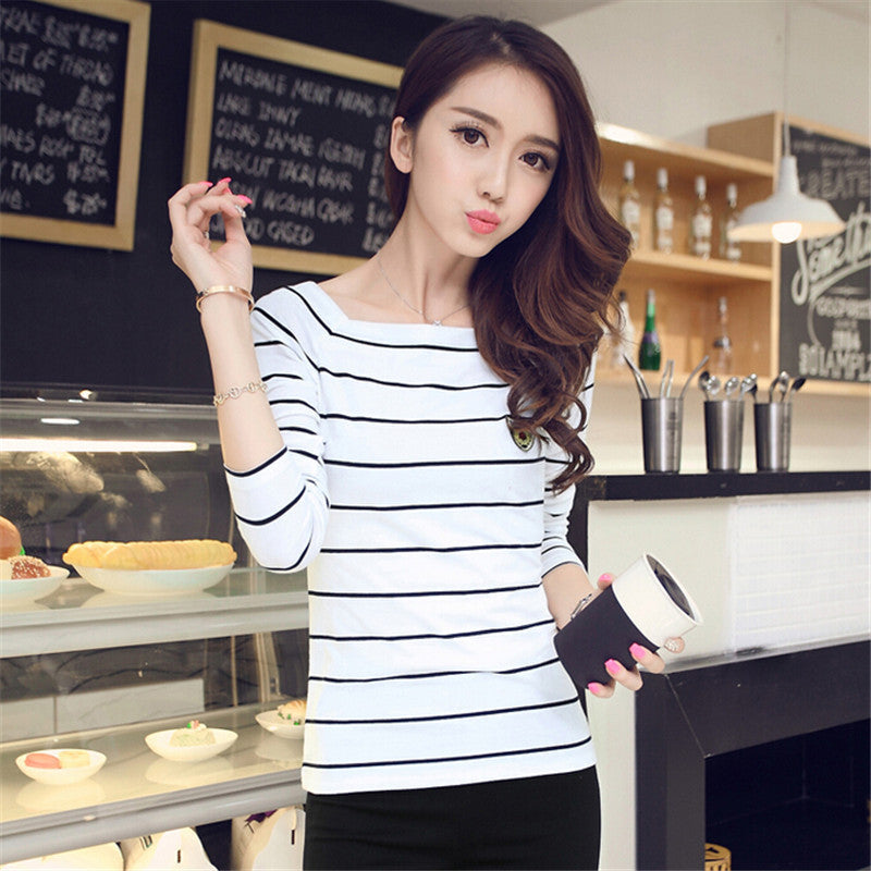 Autumn New Bottoming T Shirt Long Sleeve Slash Neck Striped T-shirt  hot  Women Tops Fashion Casual T Shirts 31800 SM6