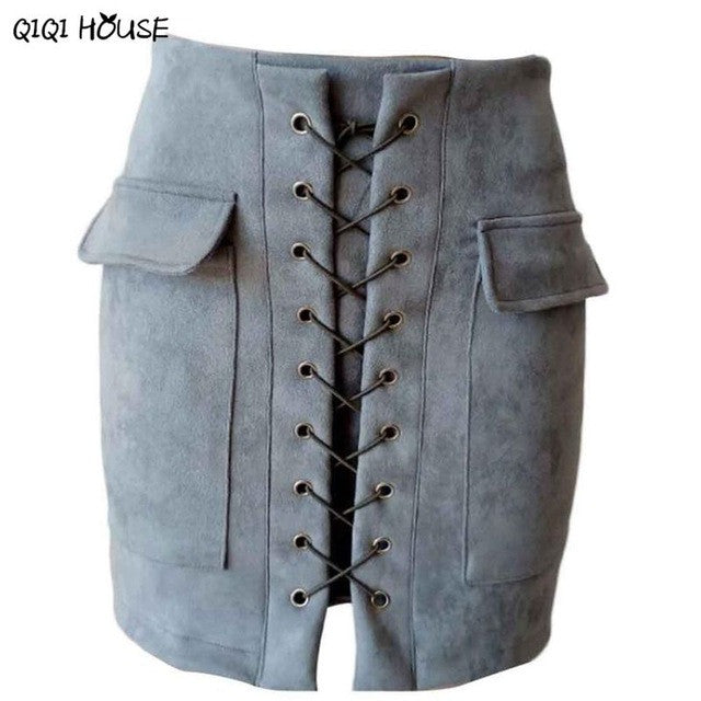 Autumn Skirts Womens Cross Bandage Suede Fabric Mini Skirt Slim Seamless Stretch Tight Elegant Skirt Saia Longa#C907 SM6