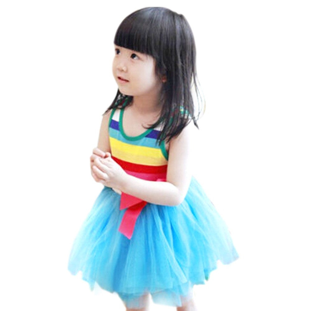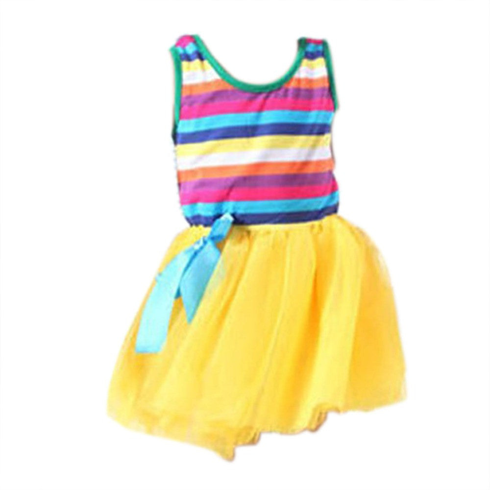 Baby Girls Puffy Dress Dancing Clothes Princess Tutu Rainbow Striped Dresses Kids Clothing SM6