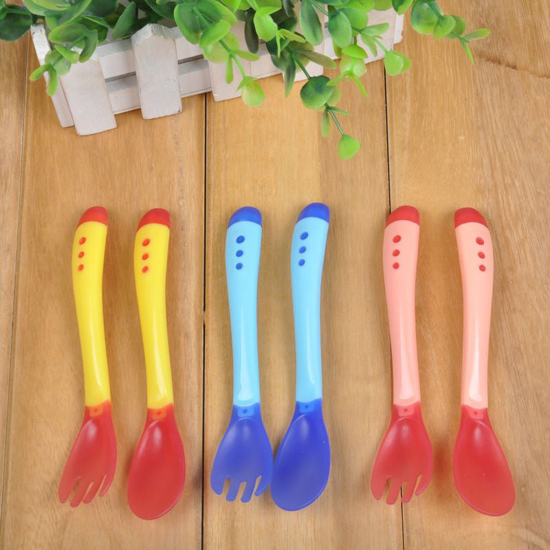 Baby Heat Sensing Thermal Feeding Fork Spoon Kids Weaning Soft Silicone Head 2 Pieces SM6