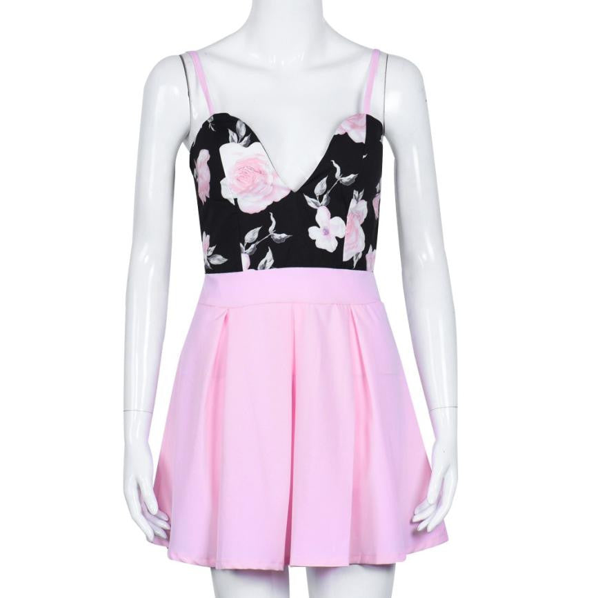 Backless Dress Off Shoulder Sleeveless Printing Floral V-Neck Short Dress Sexy Pink Dress Summer Vestidos Cortos#B719 SM6