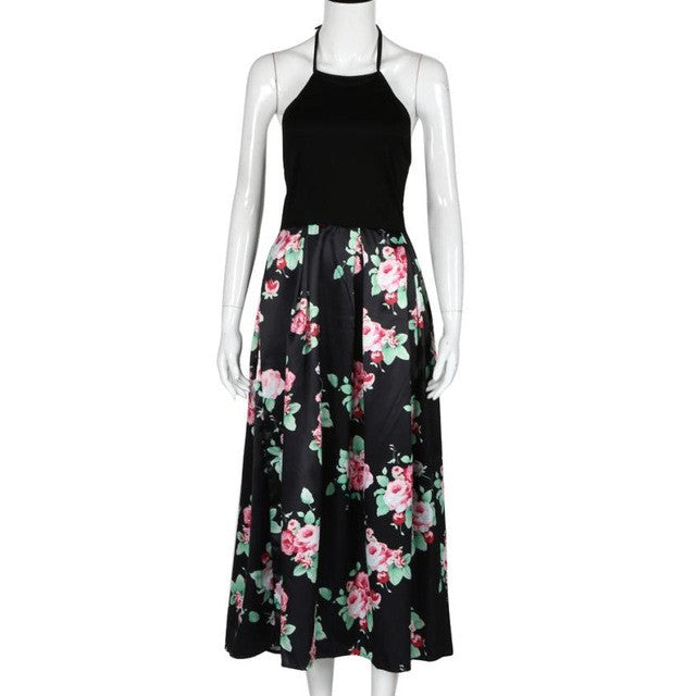 Backless Dress Retro Floral Maxi Dresses Off Shoulder Spaghetti Strap Long Summer Dress Vestidos Longo#B720 SM6