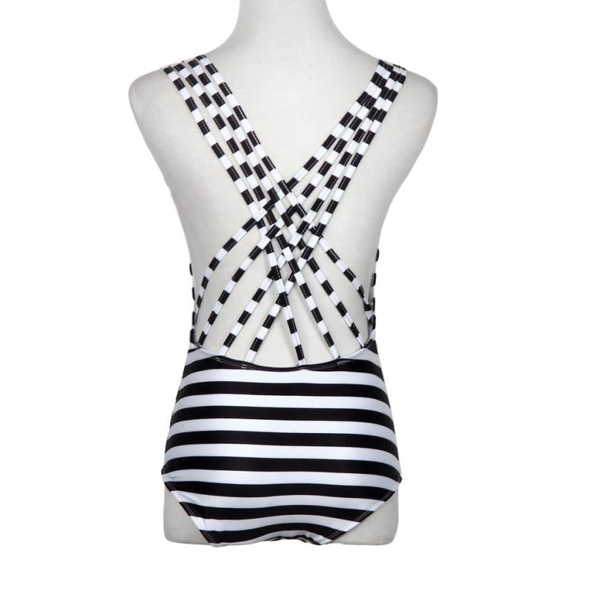 Backless Jumpsuit Sexy Cross Bandage Halter Women Bodysuit Striped Summer Beachwear Padded Sexy Rompers#121 SM6