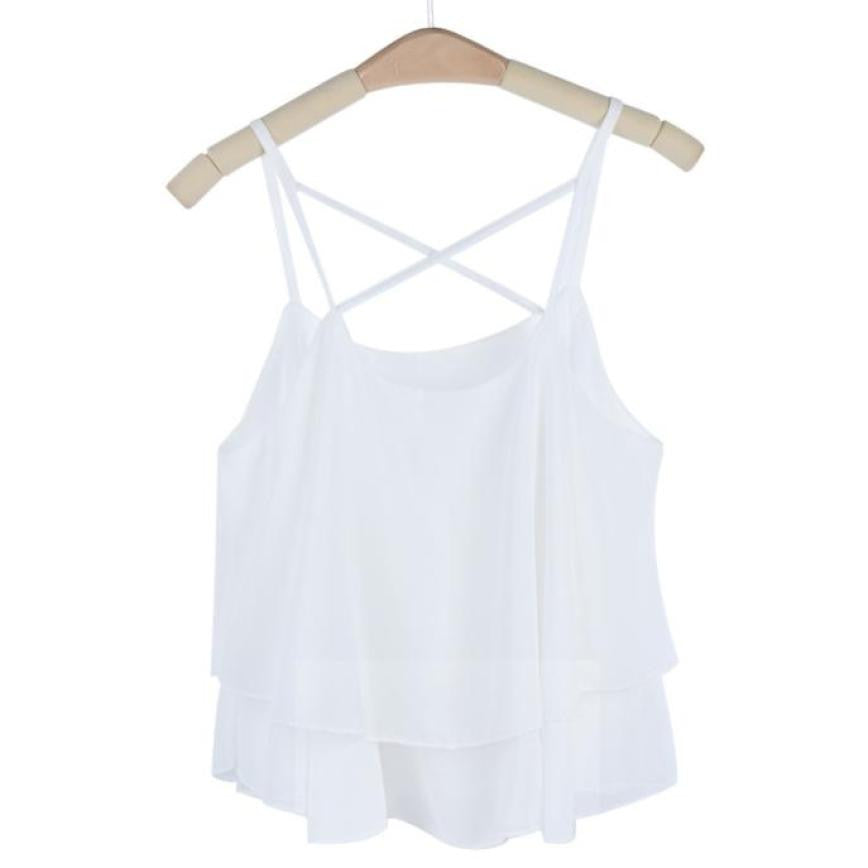 Backless Women Camis 2017 Summer Tops Cross Bandage Chiffon Summer Beach Crop Top Irregular Camisole Tomara Que Caia#121 SM6