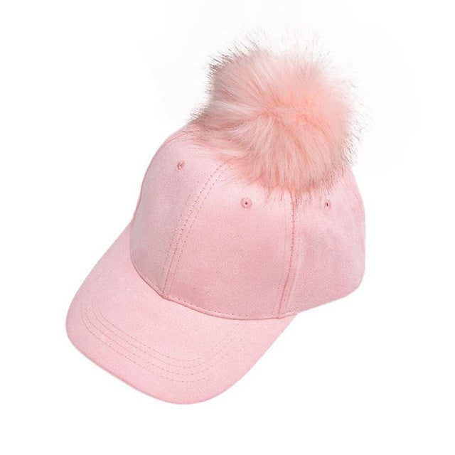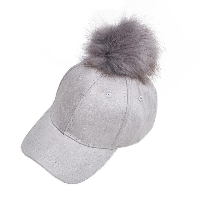Baseball Cap New Fashon Women Cotton Raccoon Fur Ball Hip Hop Casual Snapback Women Cap gorras bones &22 SM6