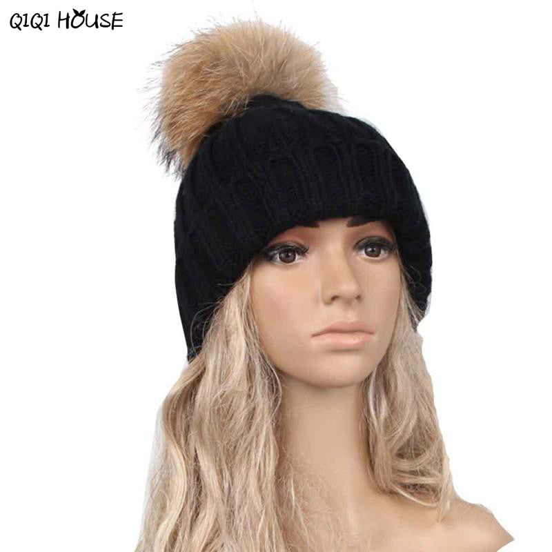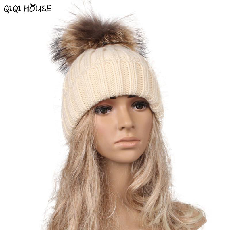 Beanie Women Winter Hats Warm Crochet Soft Kintted Wool Women Hat Out Door Fur Pompom Gorros Mujer Invierno#C103 SM6