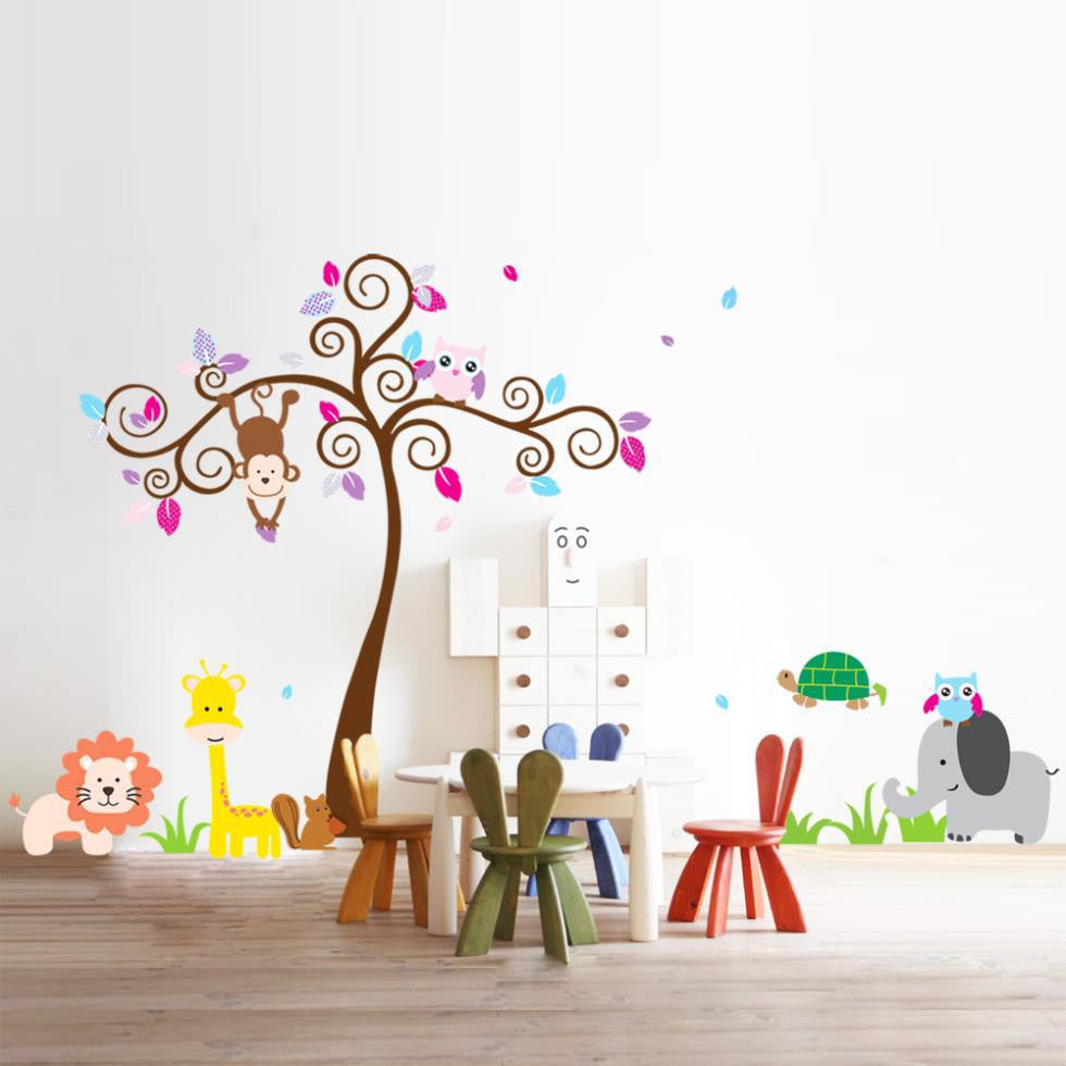 Big Tree Room Decor Owl Squirrel Monkey Home Decals Removable Vinyl Wall Sticker SM6