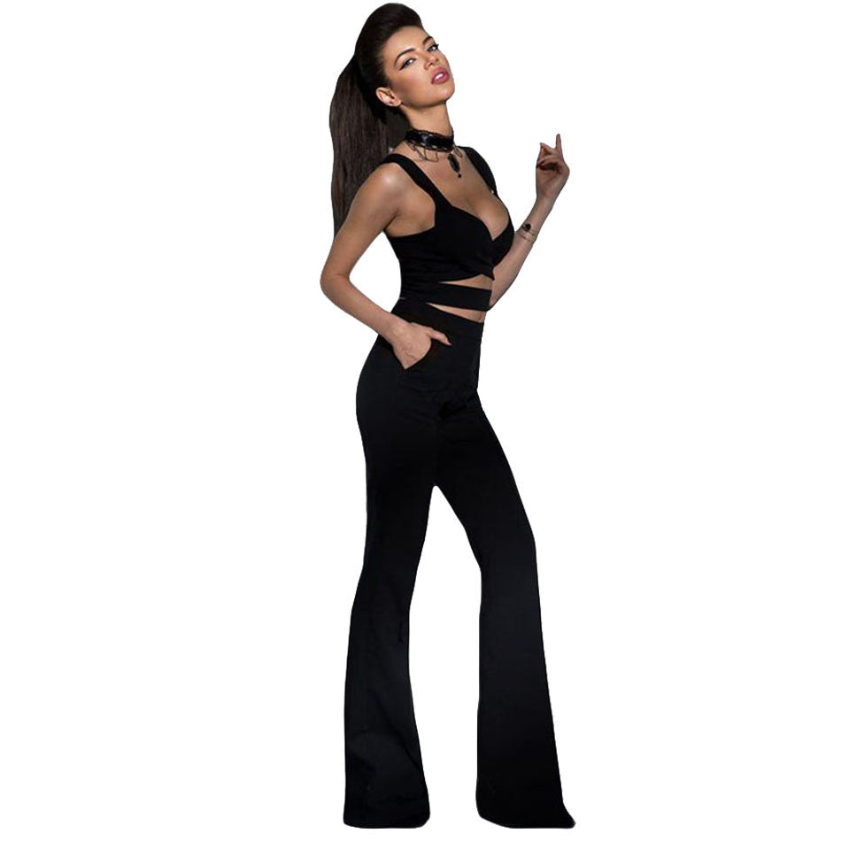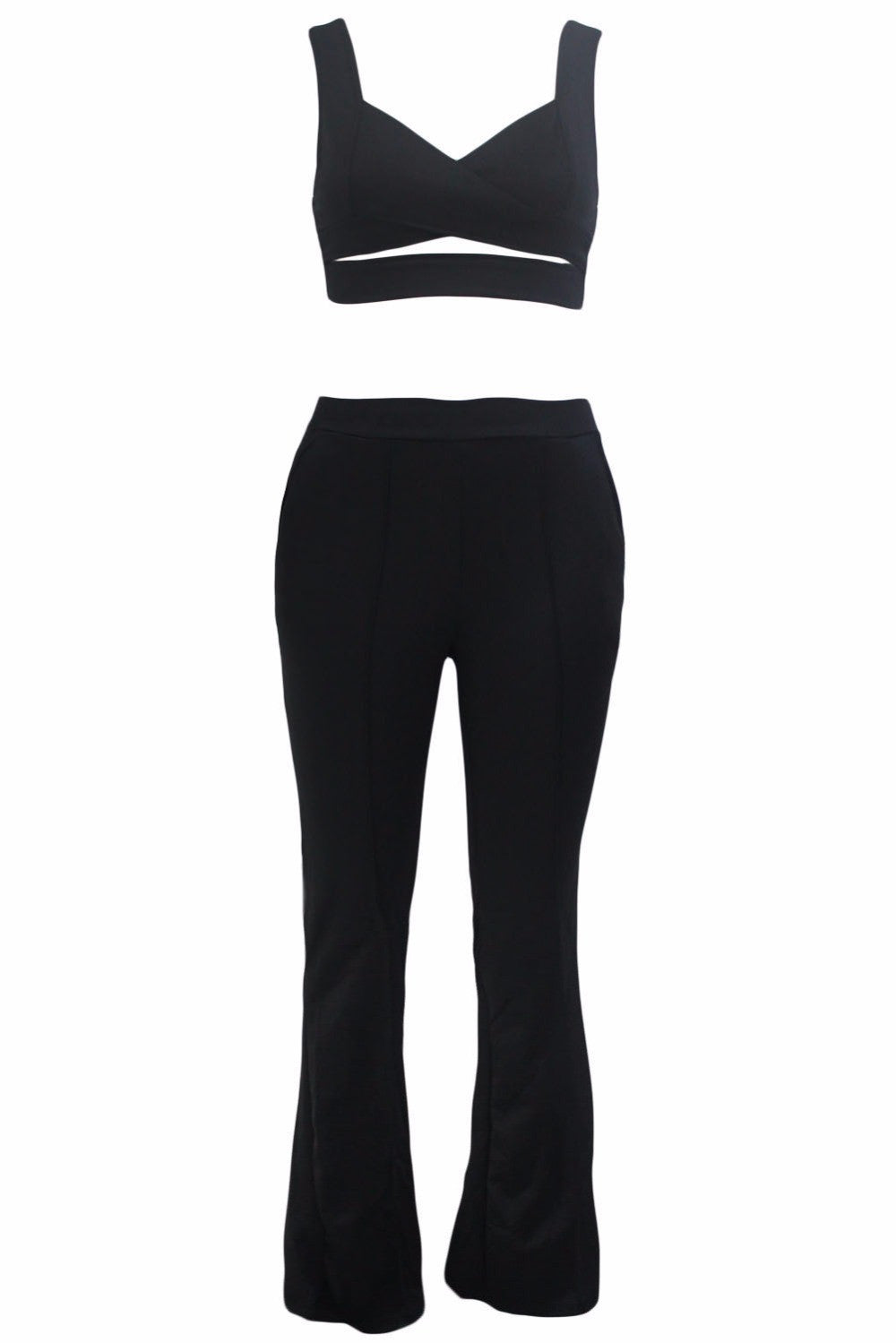 BlackBurgundy 2 Piece Set Bell-Bottom Pant And Crop Top Two Piece Set Jumpsuit Romper Overalls For 62005 SM6