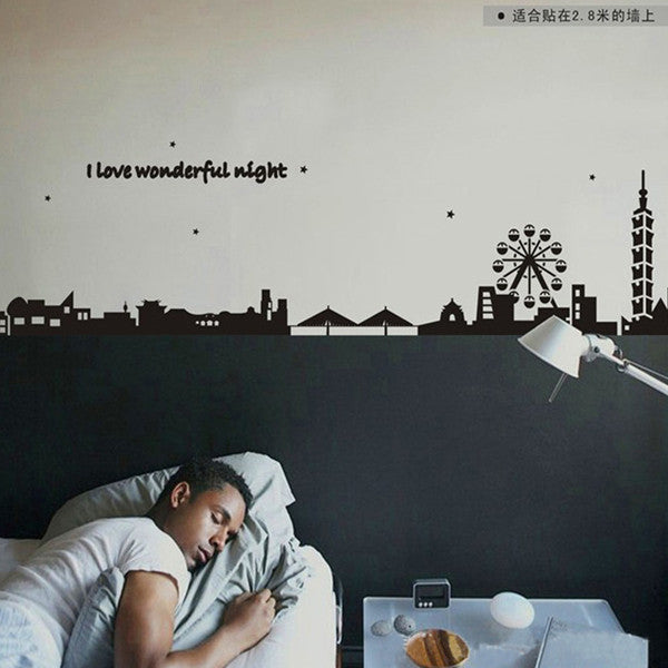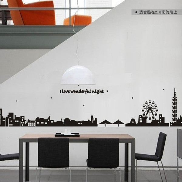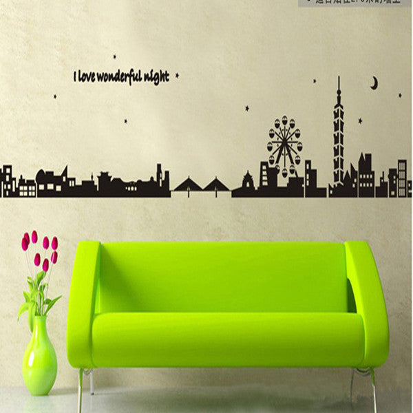 Black city silhouette creative combination sofa background adornment wall posts SM6